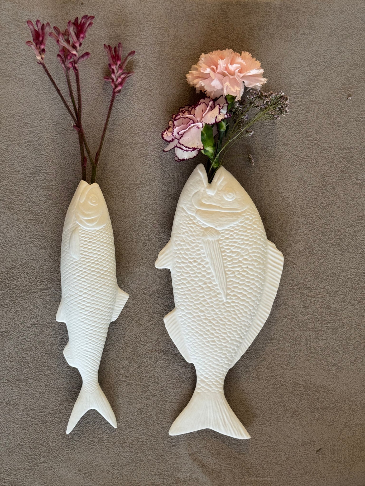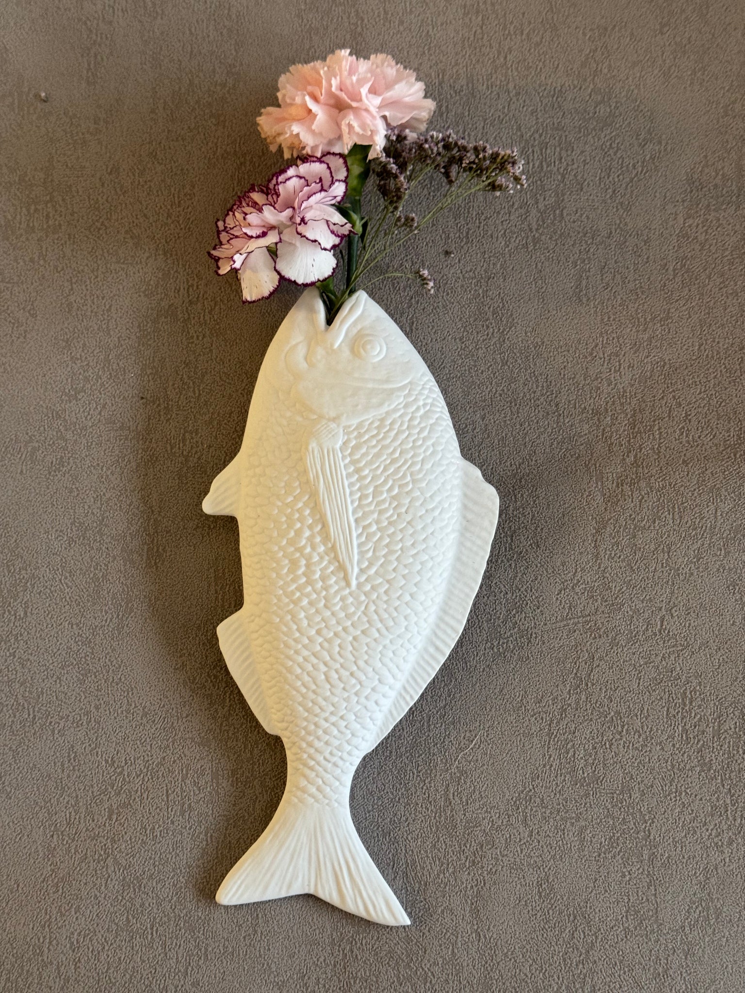 Ein absoluter, feiner Blickfang an der Wand mit oder ohne Blumen kommt der Barsch aus feinstem, weißen Fine Bone China ....jeder ein Unikat, weil per Hand gefertigt