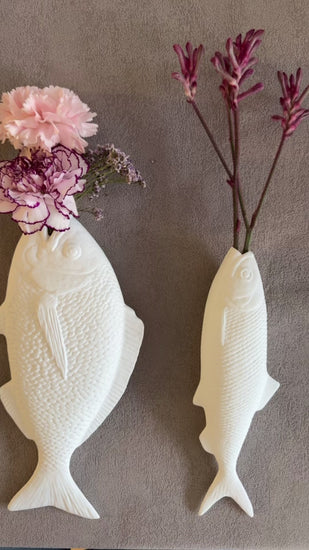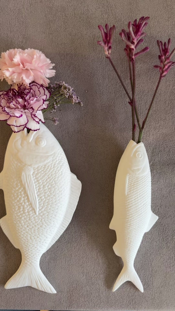 "Darf ich vorstellen ... Peter Barsch - ich bin ein niedlicher Porzellan Fisch Blumenvase Klatt Objects Wandvase weiss