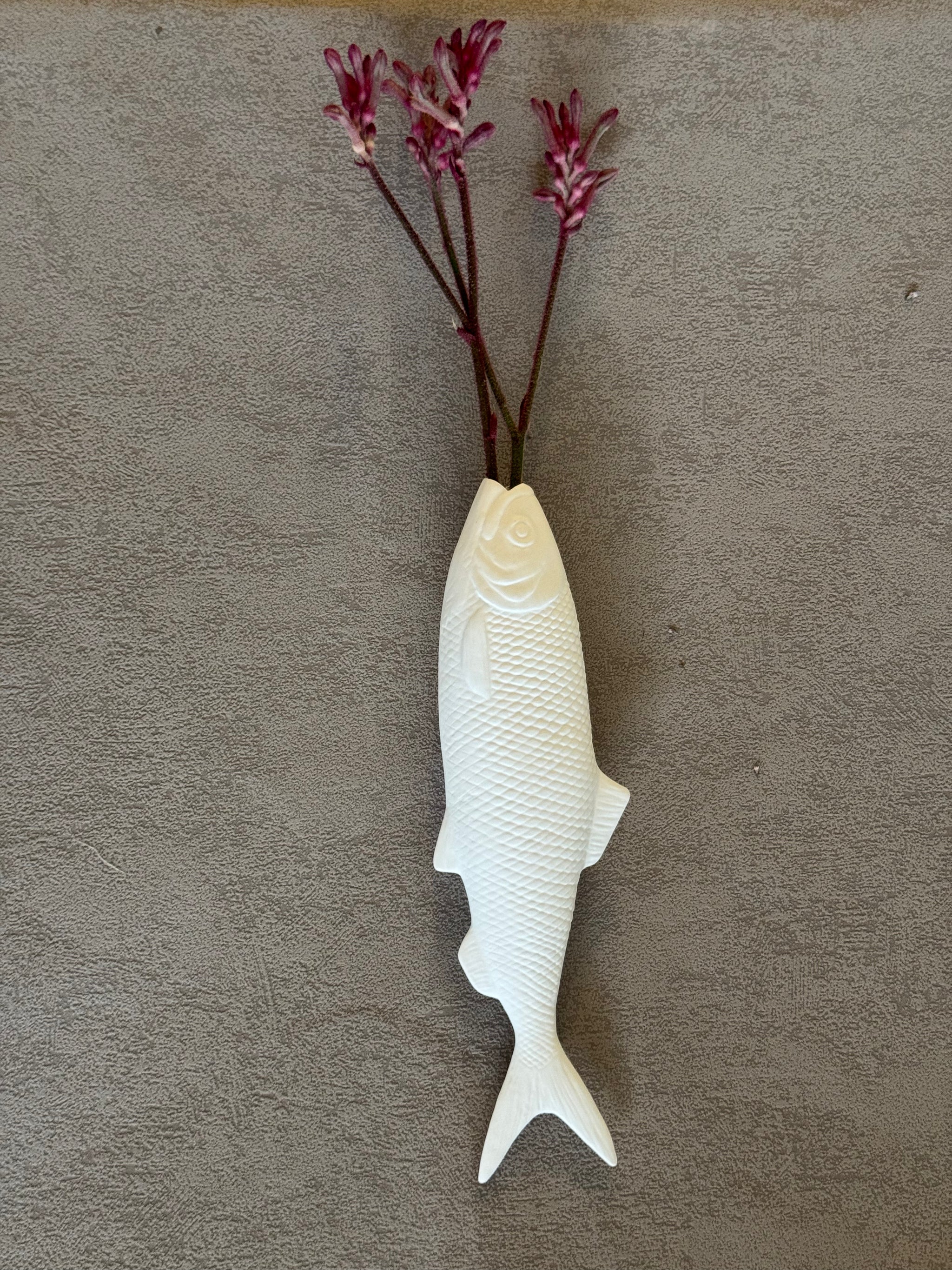 Mein Name ist Elke ... und ich bin ein niedlicher Porzellan Fisch Blumenvase Klatt Objects für die Wand Hängevase weiss
