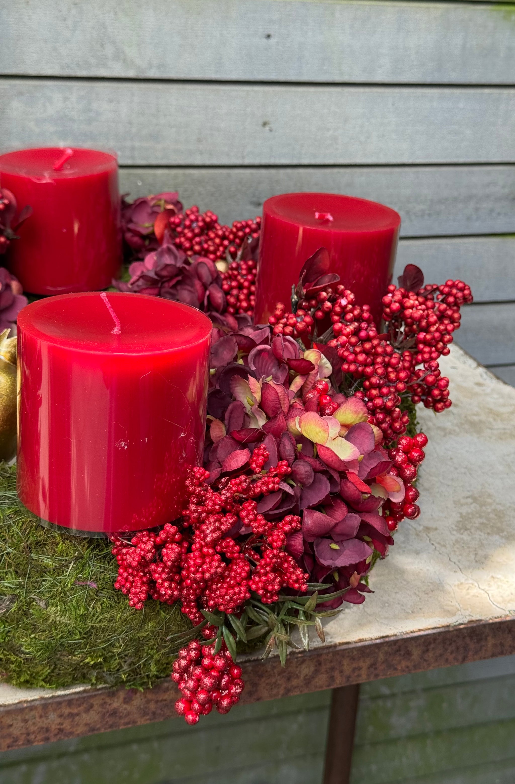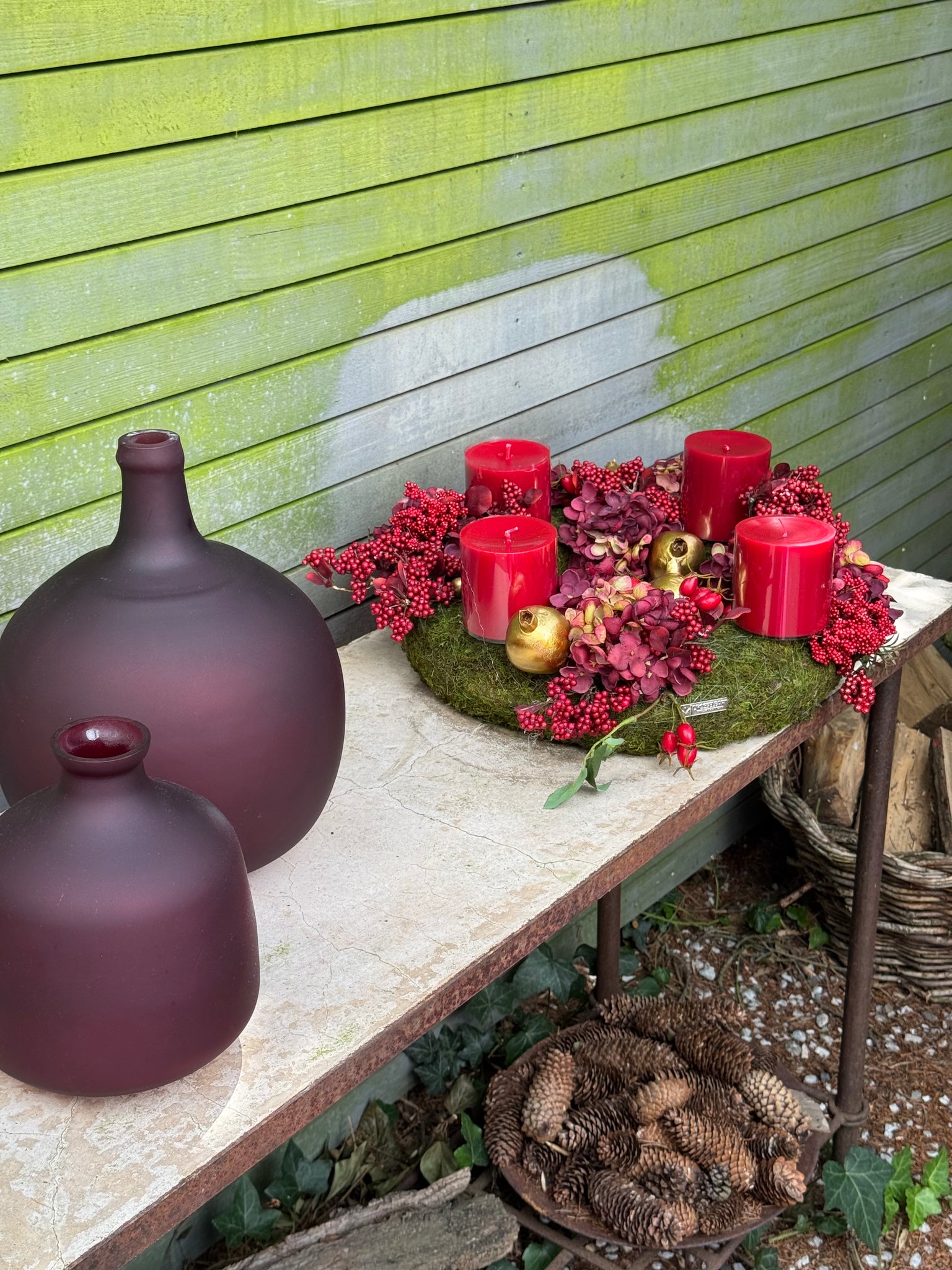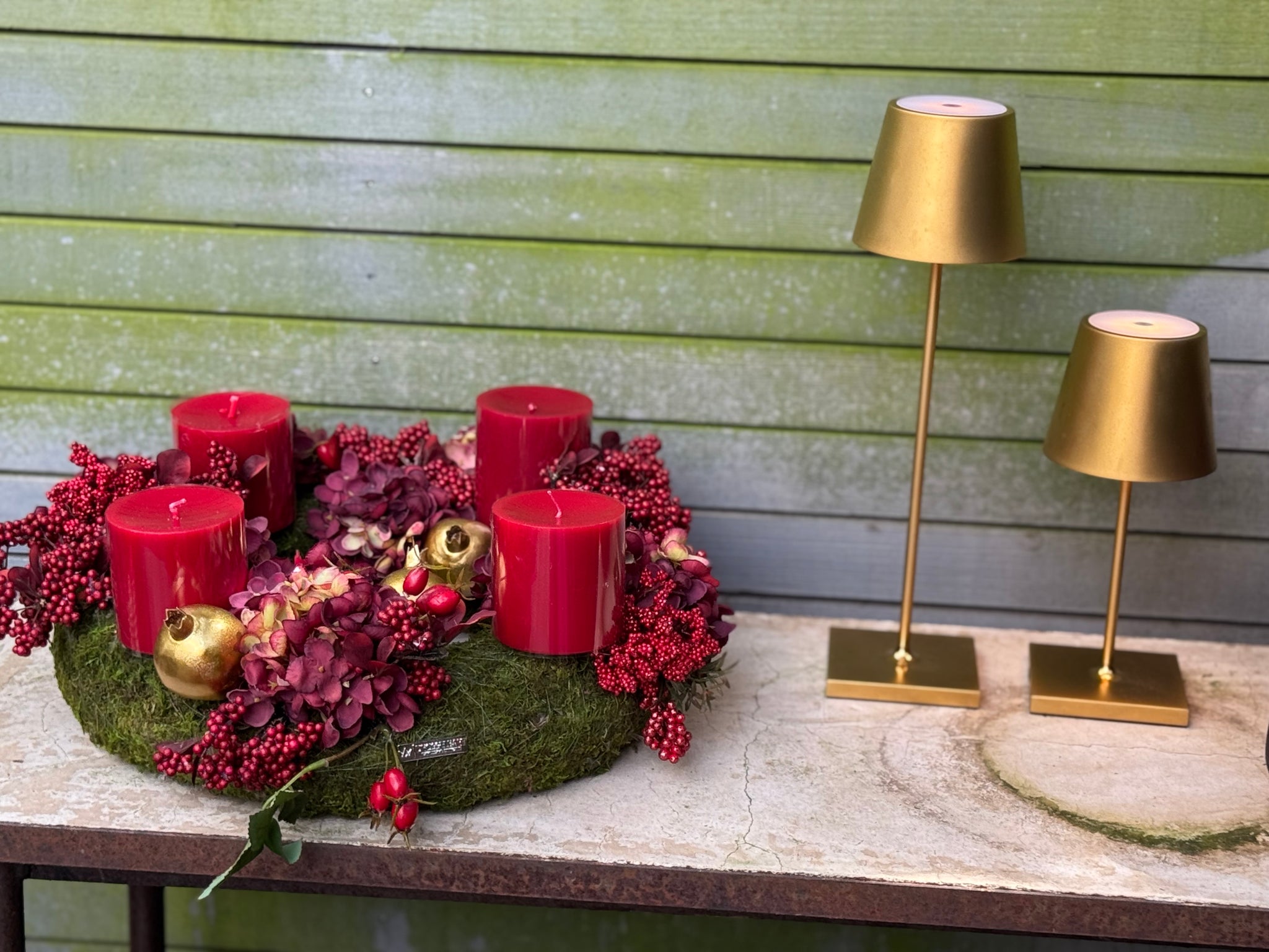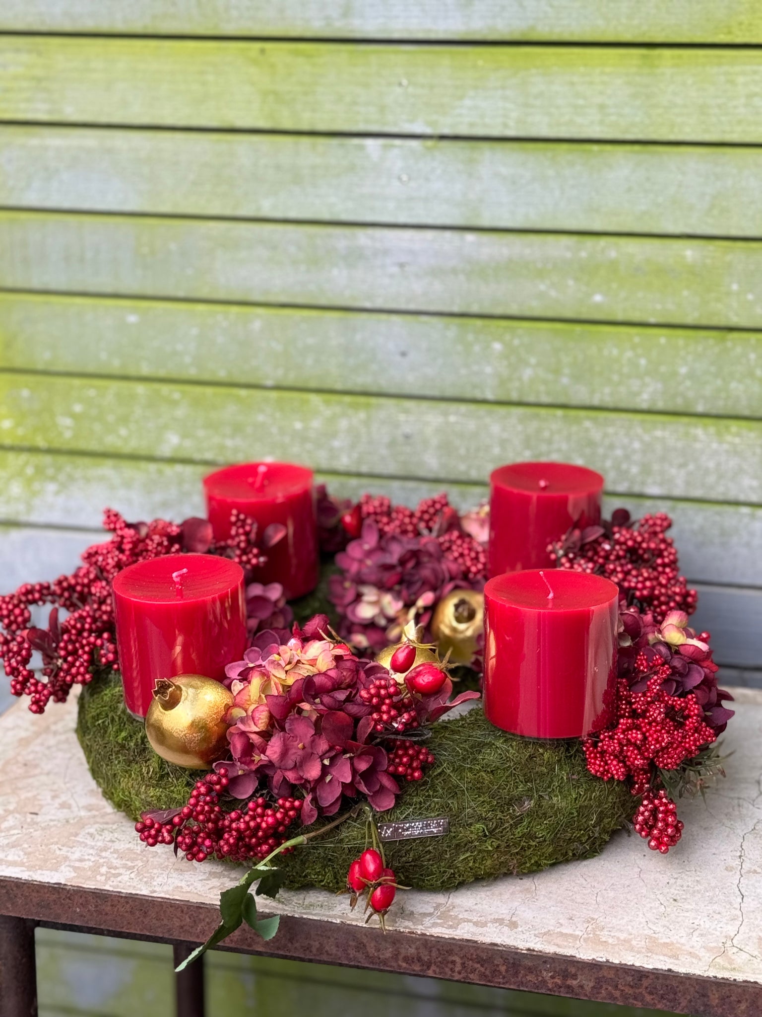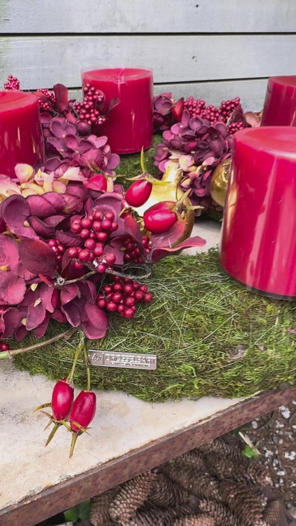 Die Kombination aus feinem Moos, zarten Trockenblumen, frischen Beerentönen und Gold sowie ausgewählten Details bringen Leichtigkeit und Farbe in Ihre Adventsdekoration. Ob mit Kerzen als klassischer Adventskranz oder nach der Weihnachtszeit als extravagantes Tischarrangement – dieser Kranz ist einfach zeitlos schön