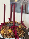 • Inklusive 4 Stabkerzen H: 24 cm Farbe: weinrot mit passenden Schleifen - siehe Fotos