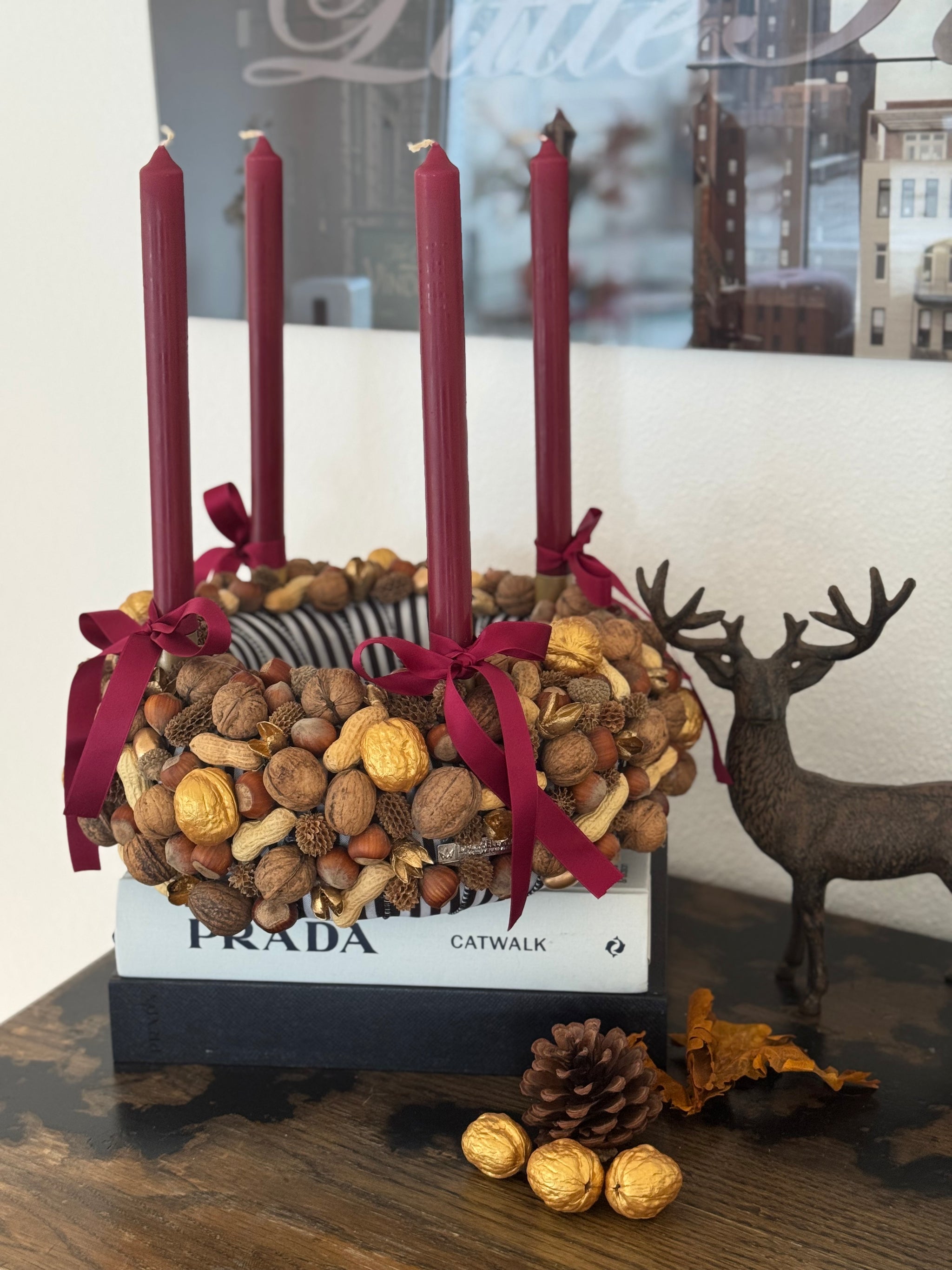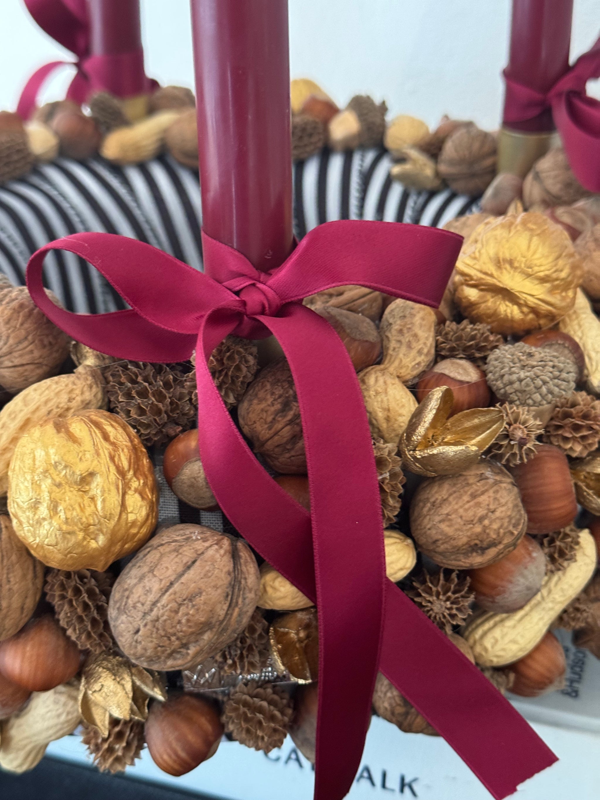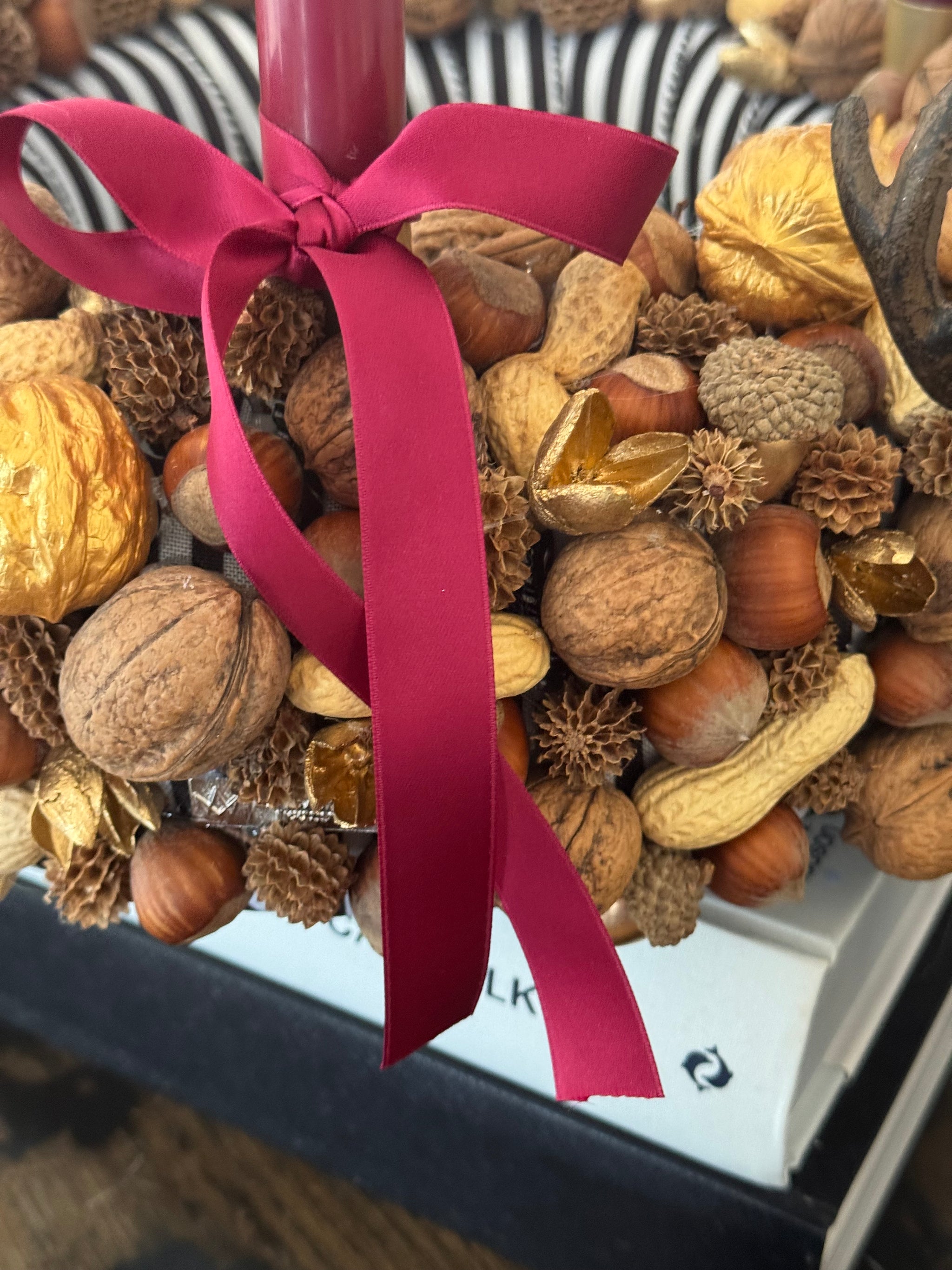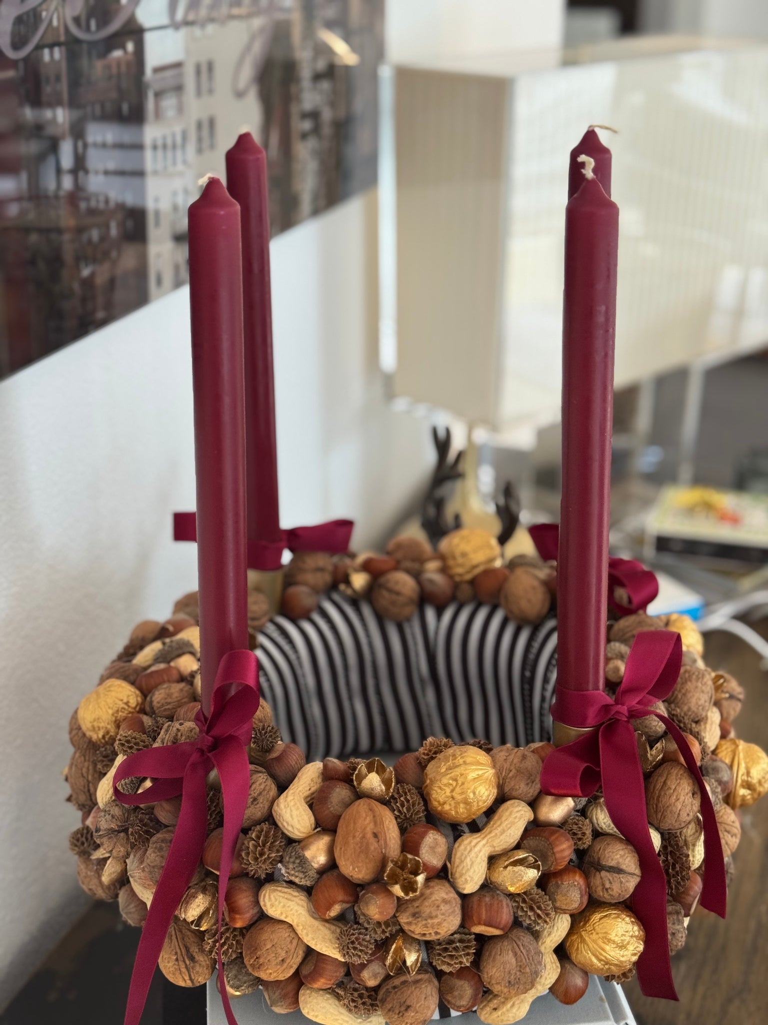 Drei Nüsse für ein Weihnachtswunder : Adventskranz Aschenbrödel aus Nüssen Weinrot Gr. M
