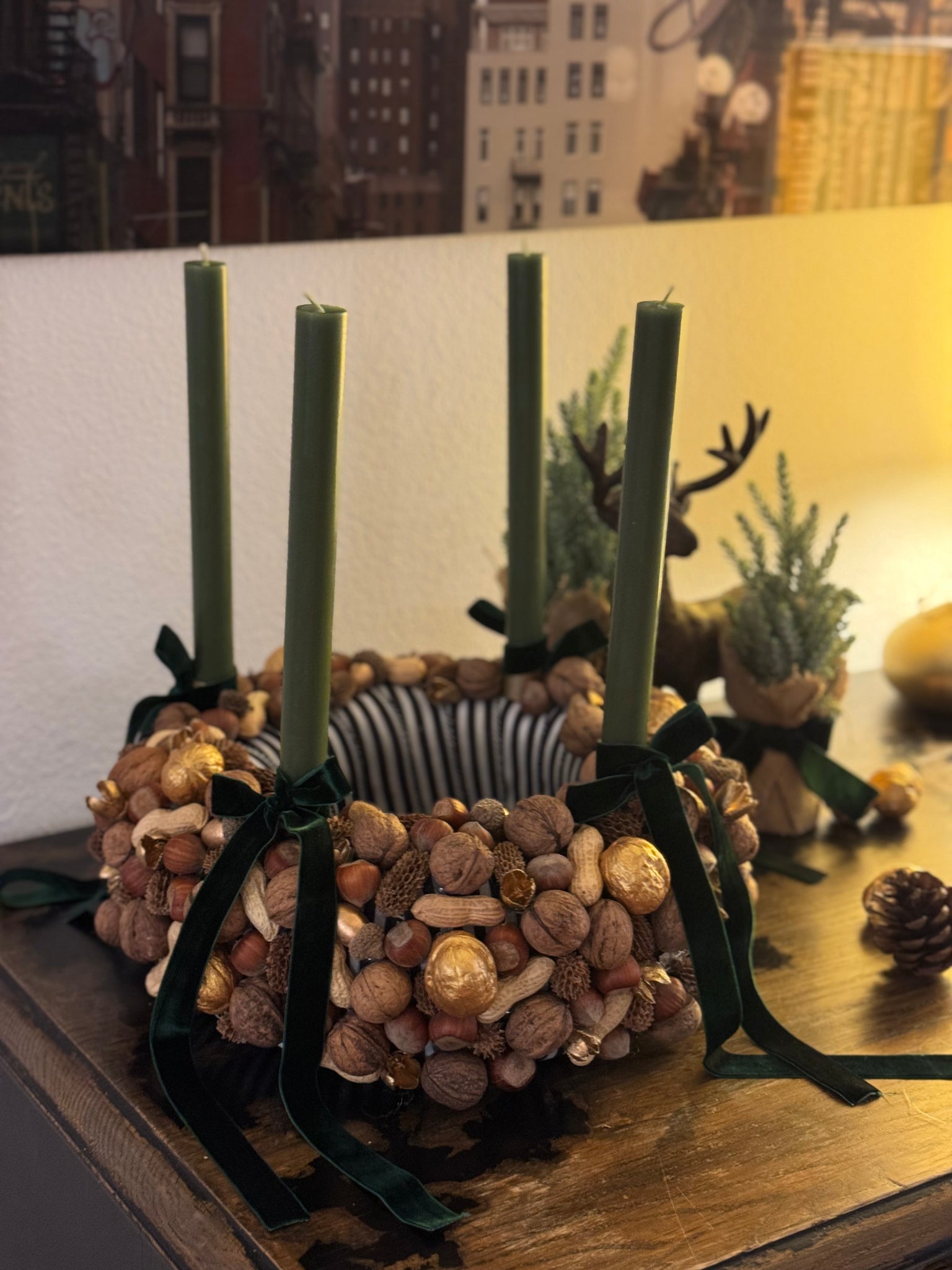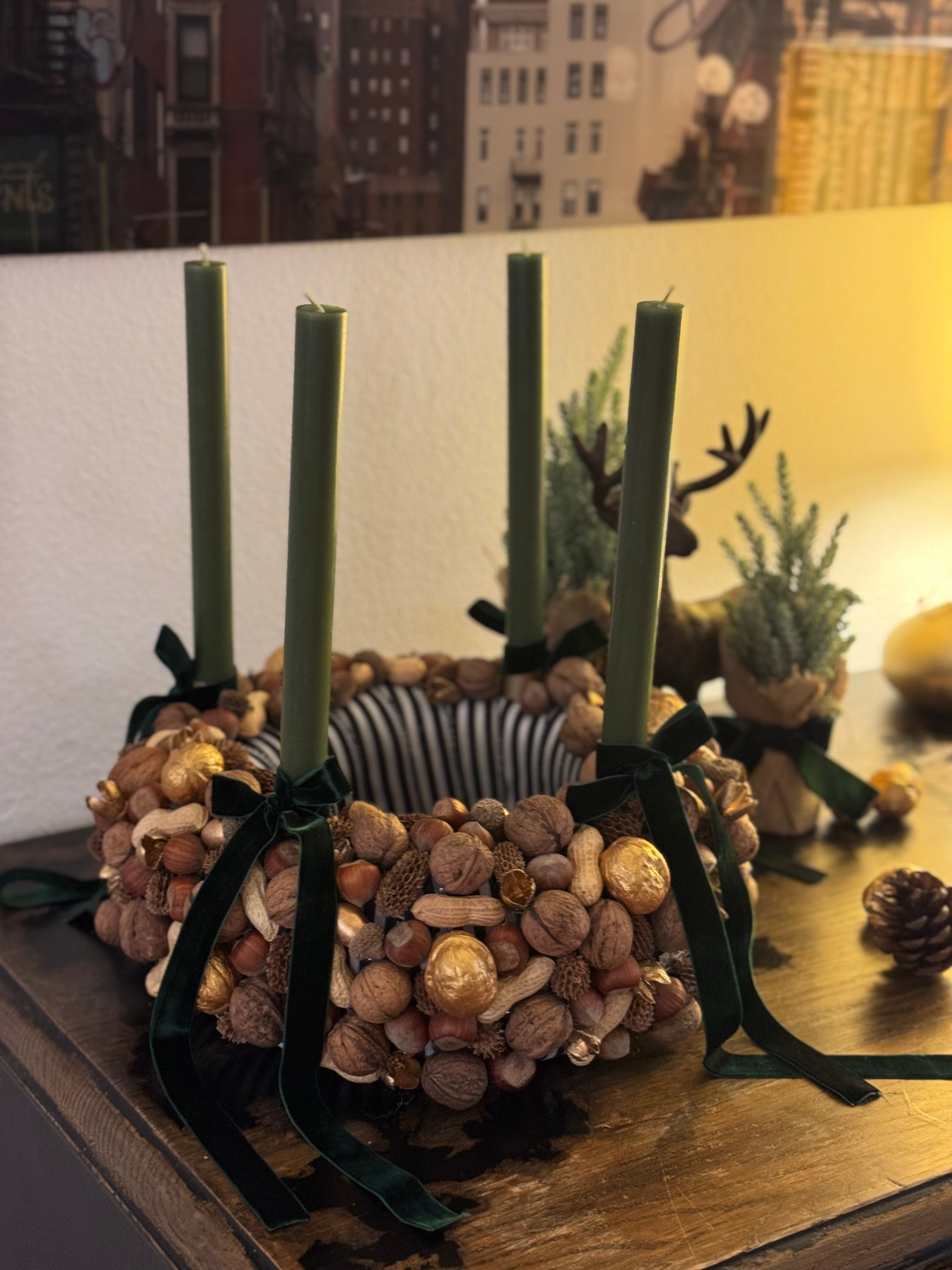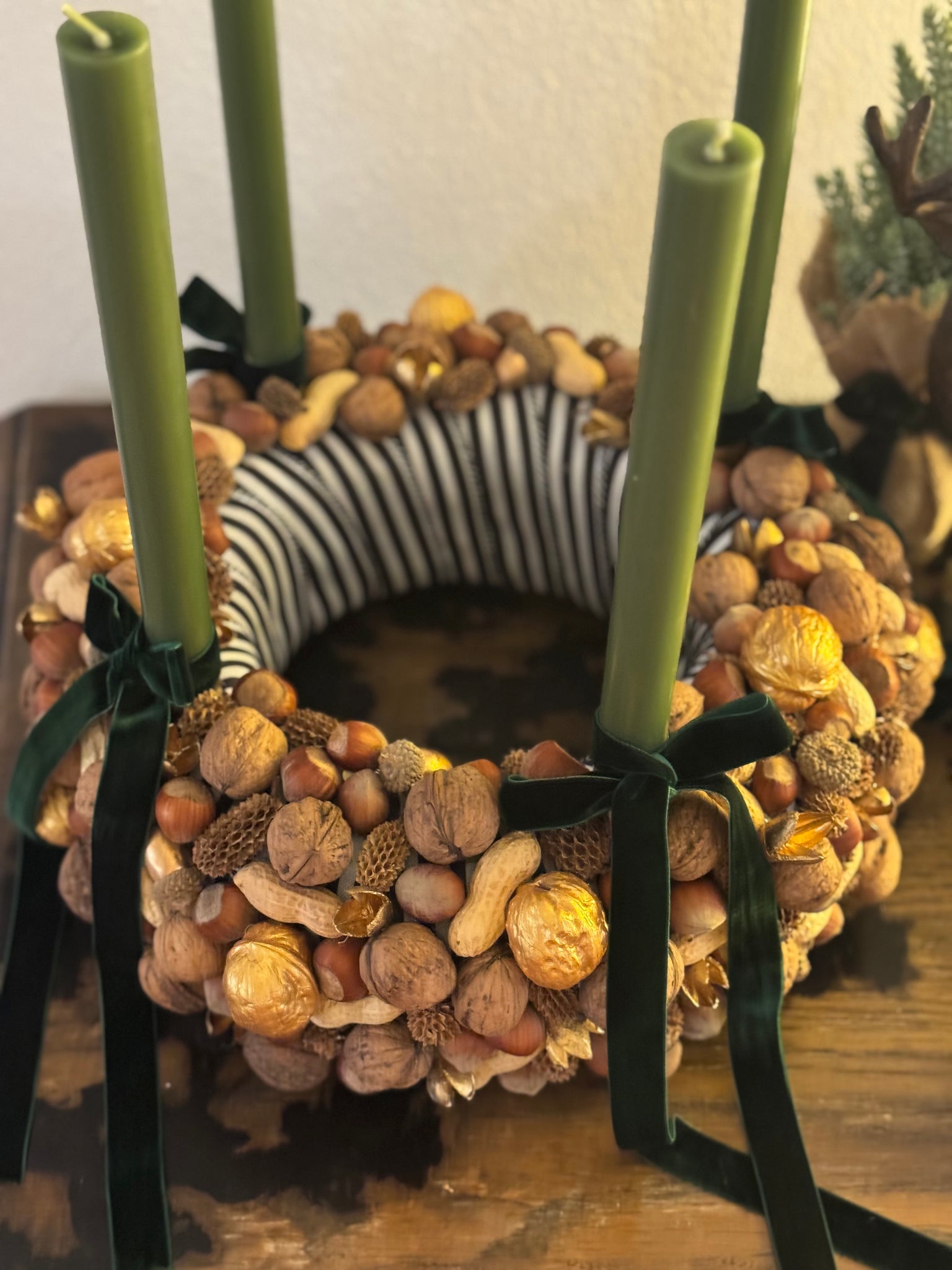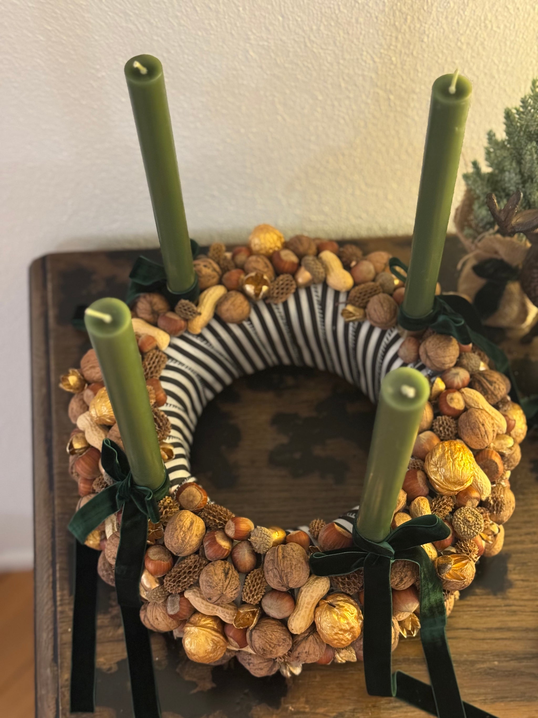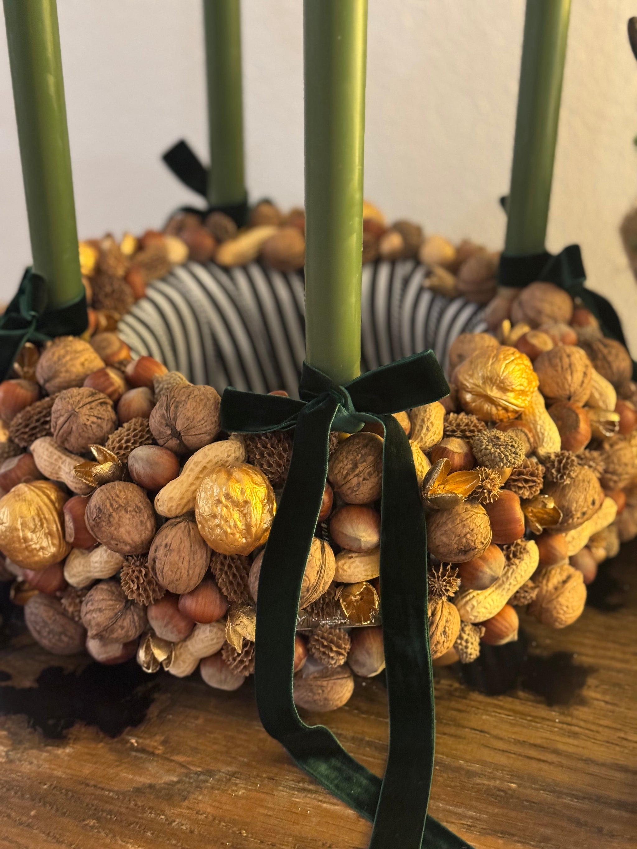Drei Nüsse für ein Weihnachtswunder : Adventskranz Aschenbrödel aus Nüssen dunkelgrün Gr. M