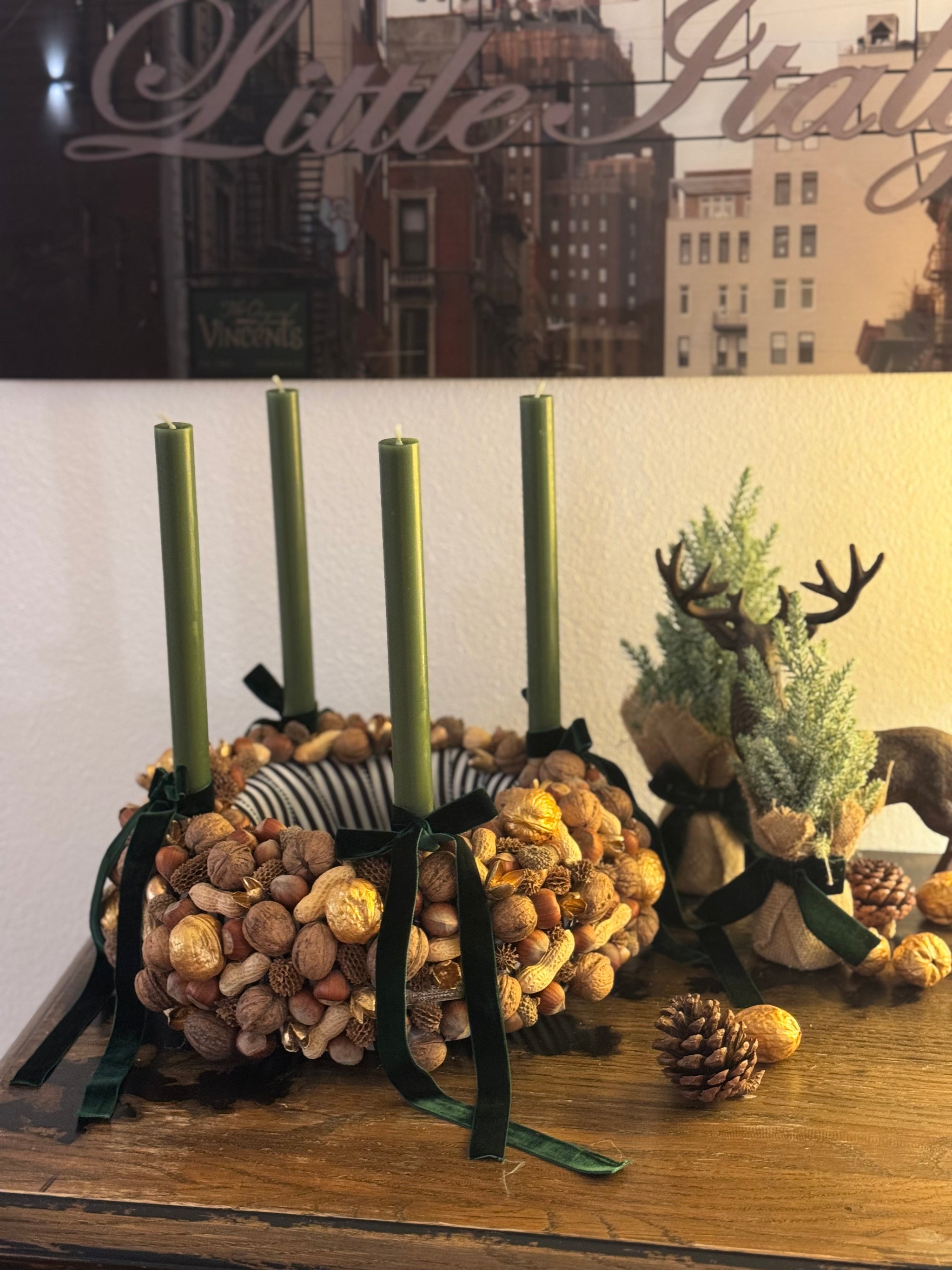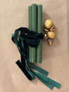 - Inklusive 4 Stabkerzen H: 24 cm Farbe: grün von Engels Kerzen Brenndauer: 10 Std. mit passenden Samtband in dunkelgrün für die Schleifen - siehe Fotos