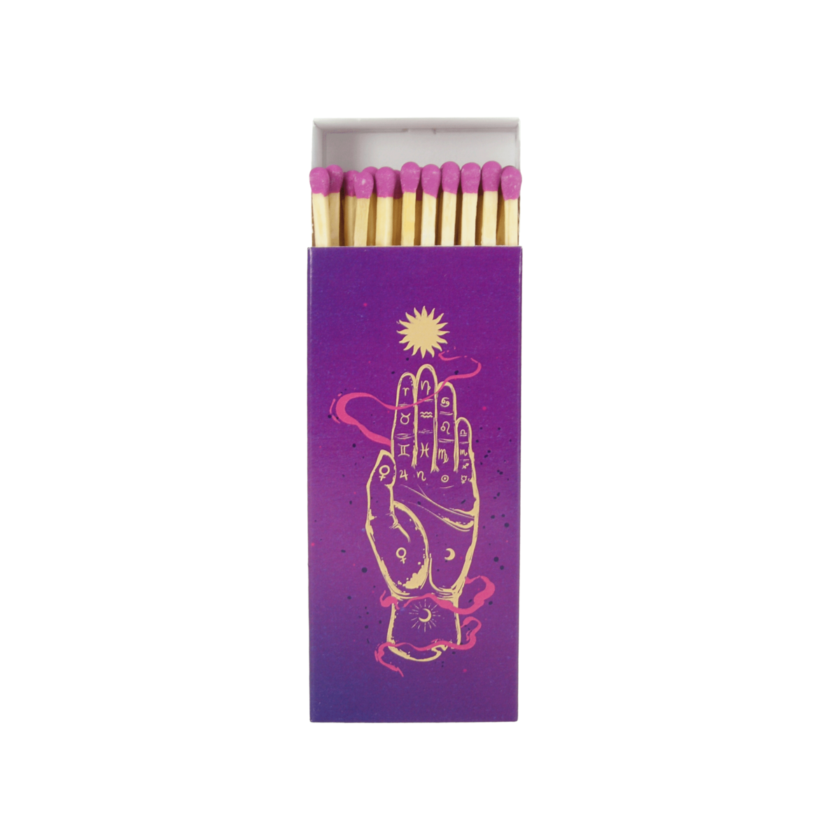 Die auf der Verpackung dargestellte Hand des Schicksals symbolisiert die Verbindung zwischen der materiellen und der spirituellen Welt. Sie steht für Vergangenheit, Gegenwart und Zukunft, die sich in jedem Moment neu verweben. Mit jedem Anzünden eines Streichholzes wird dieser Gedanke des Wandels aufgegriffen – die Flamme wird zum Symbol für Neuanfang, Klarheit und Mut, bewusste Entscheidungen zu treffen.
