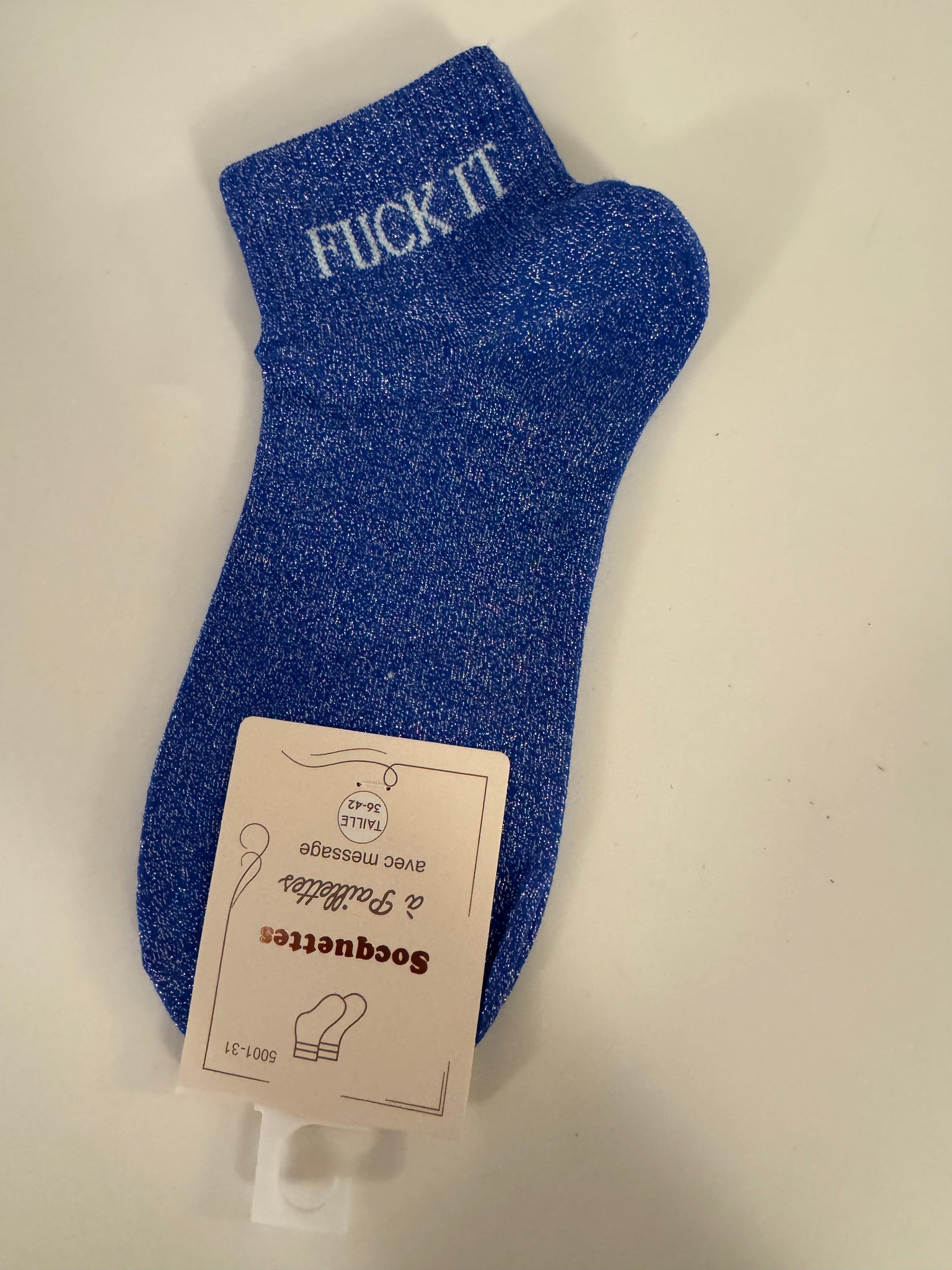 FUCK IT Damensocken blau mit Glitzer Gr. 36-42