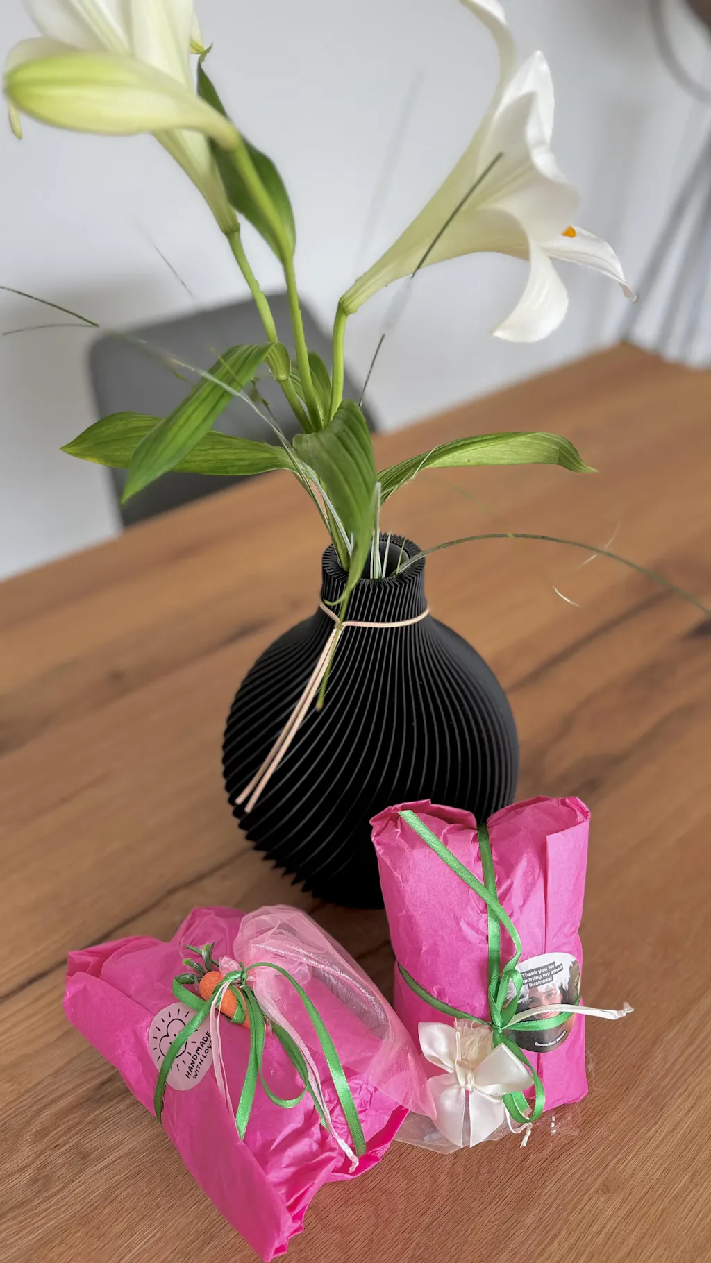 Die charakteristische Rippenoptik fängt das Licht sanft ein und schafft eine subtile, organische Textur, die perfekt zu aktuellen Trends wie natürlichen Formen und Soft Heritage passt.