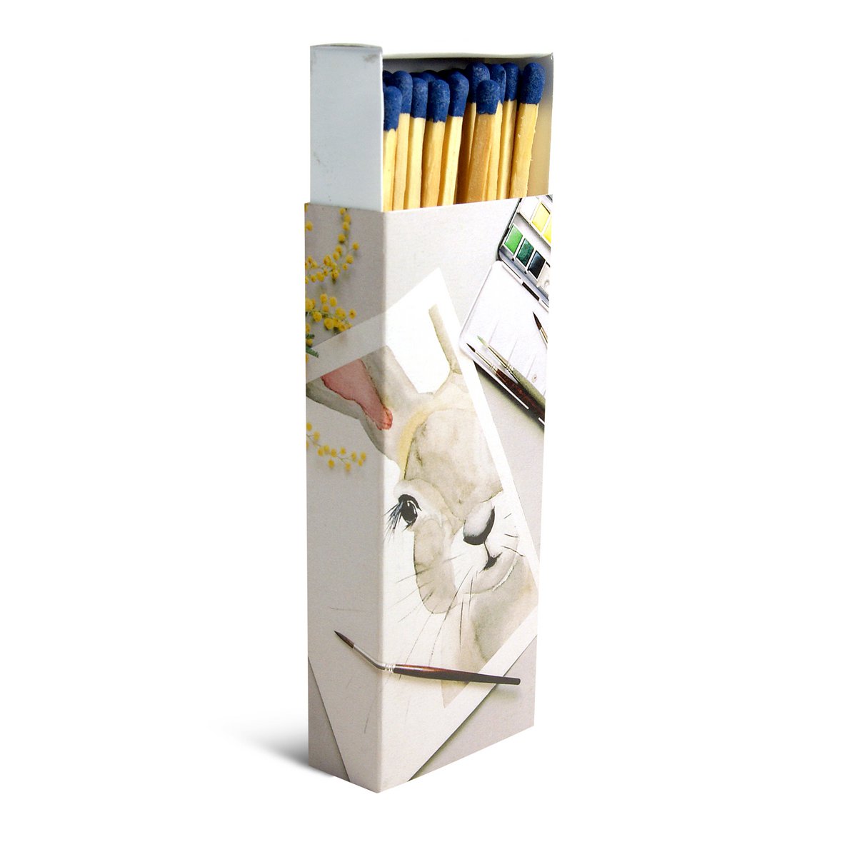 Diese außergewöhnliche Streichholzschachtel verbindet funktionale Qualität mit künstlerischer Eleganz. Das fein illustrierte Aquarellmotiv zeigt einen ausdrucksstarken Hasen in sanften, natürlichen Farbtönen – ruhig, poetisch und detailverliebt. Das Motiv erinnert an klassische Naturstudien und verleiht der Schachtel eine zeitlose, hochwertige Ausstrahlung.