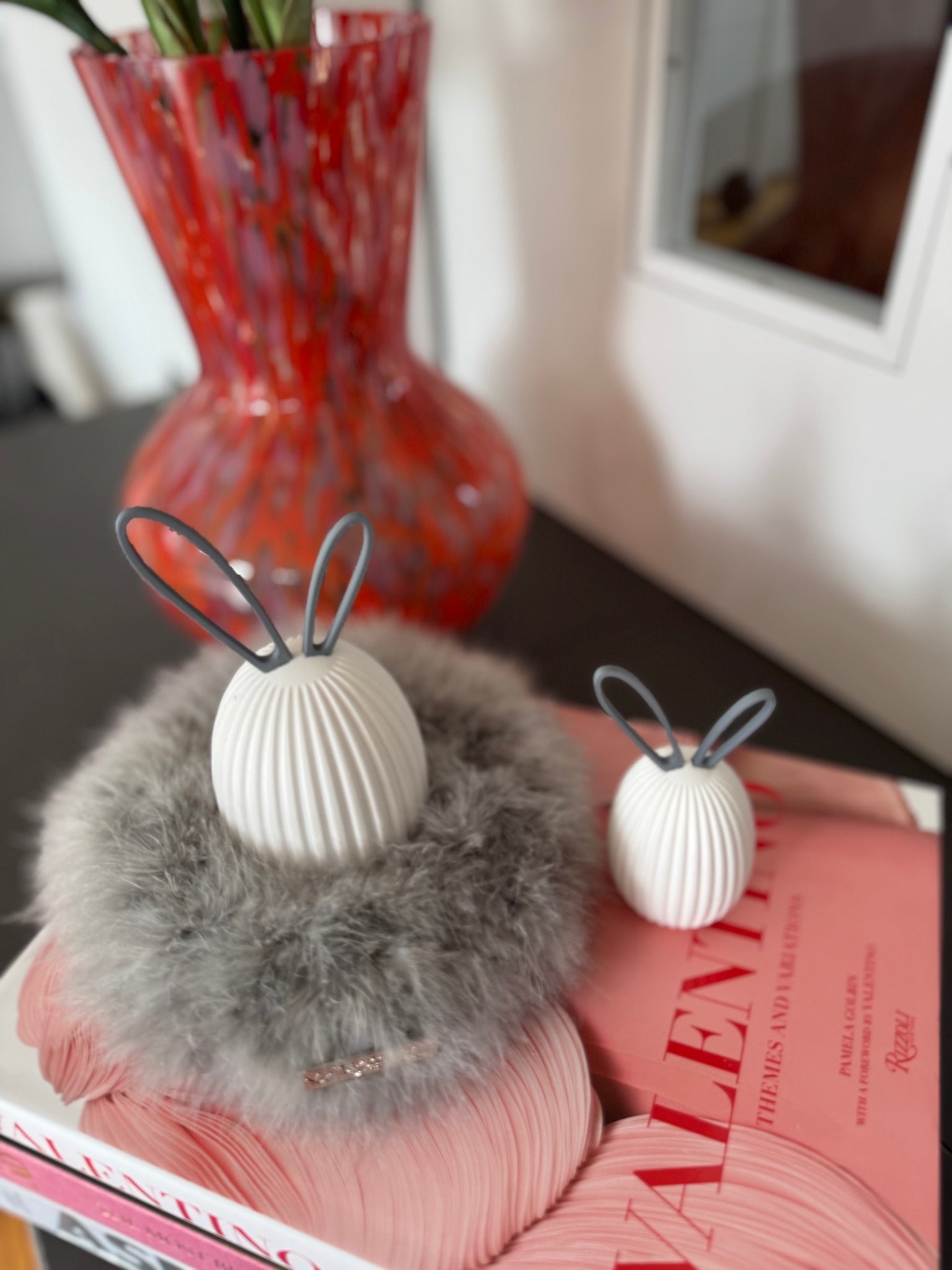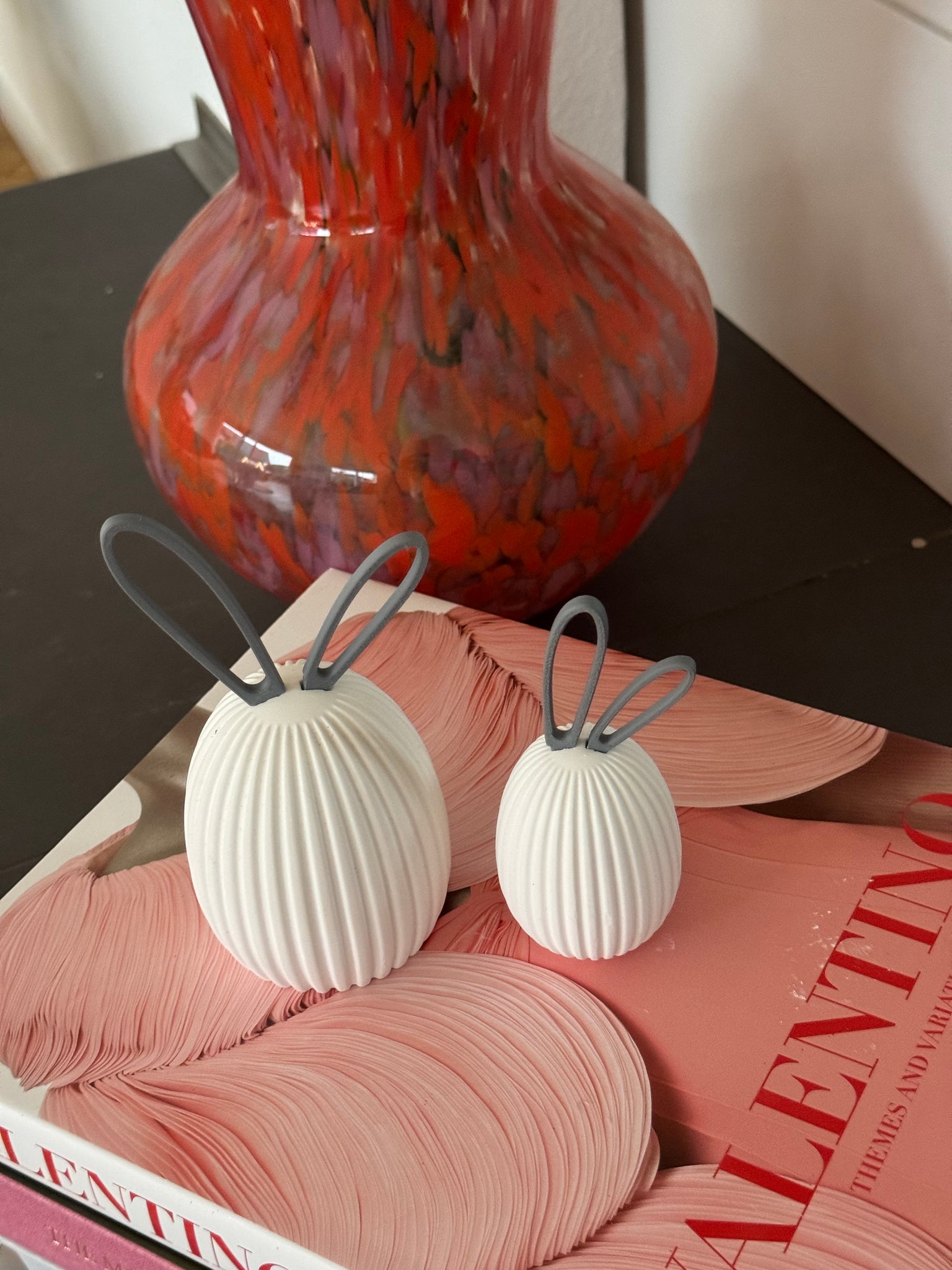 Diese modernen Ostereier sind ein stilvolles Highlight für alle, die Osterdekoration modern, hochwertig und mit einem Augenzwinkern lieben. Die 3D-gedruckten Ostereier überzeugen durch ihre feine Rillenstruktur und die charakteristischen Steckohren, die den Eiern eine reduzierte, zeitgemäße Hasen-Optik verleihen. Modernes Design trifft hier auf spielerische Leichtigkeit – fernab von klassischer Osterdeko.