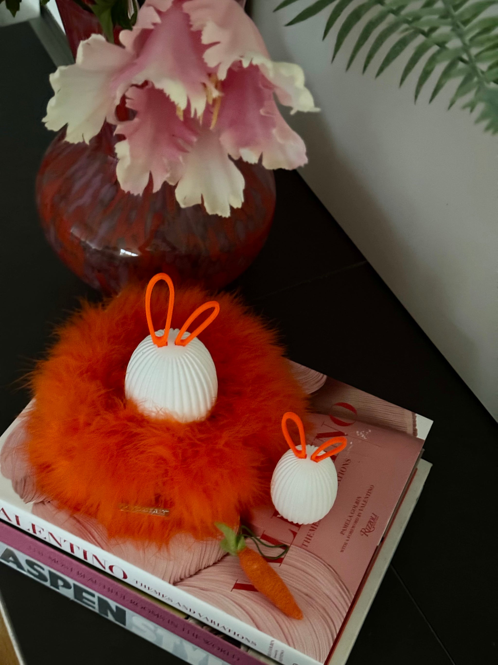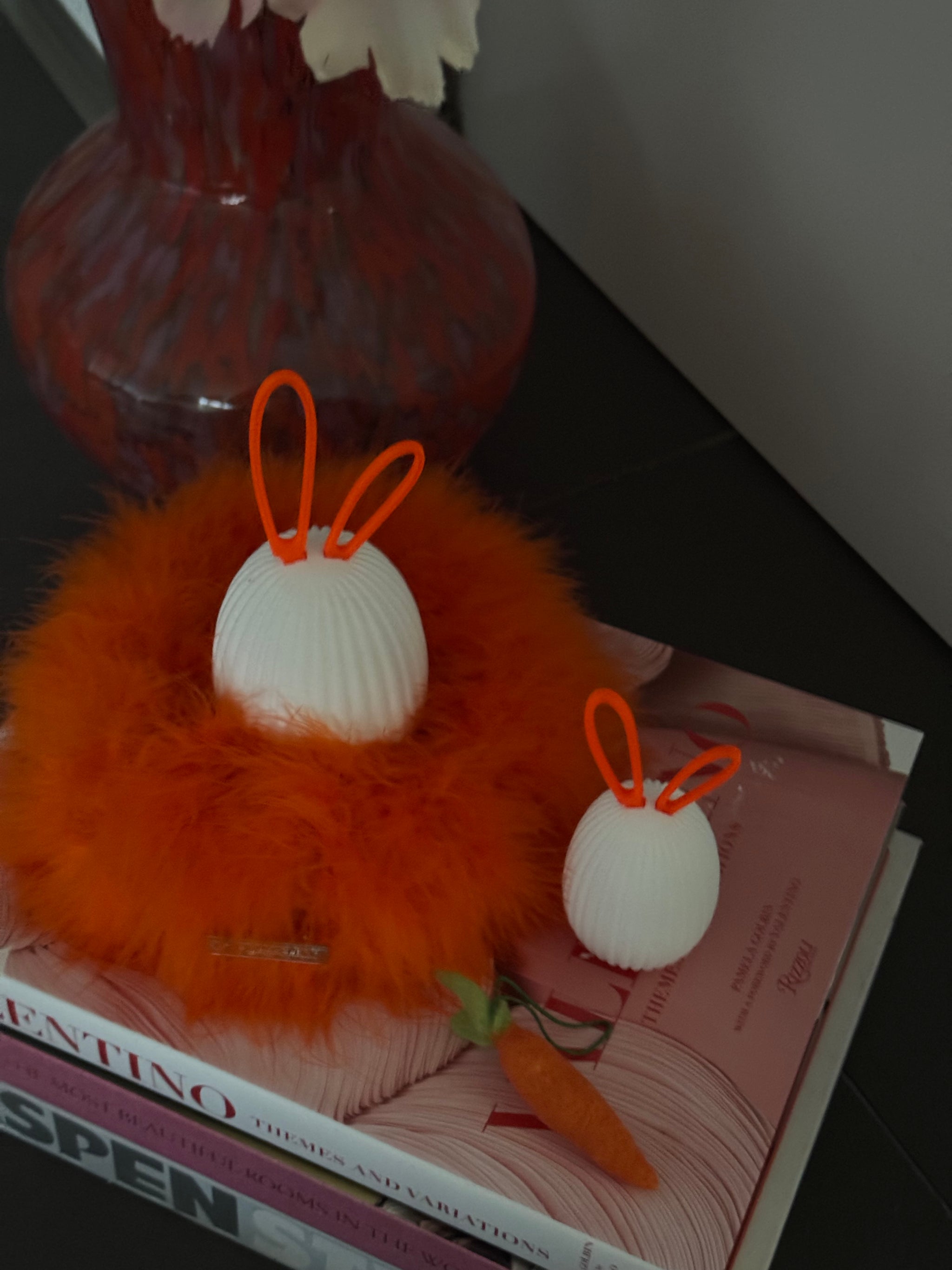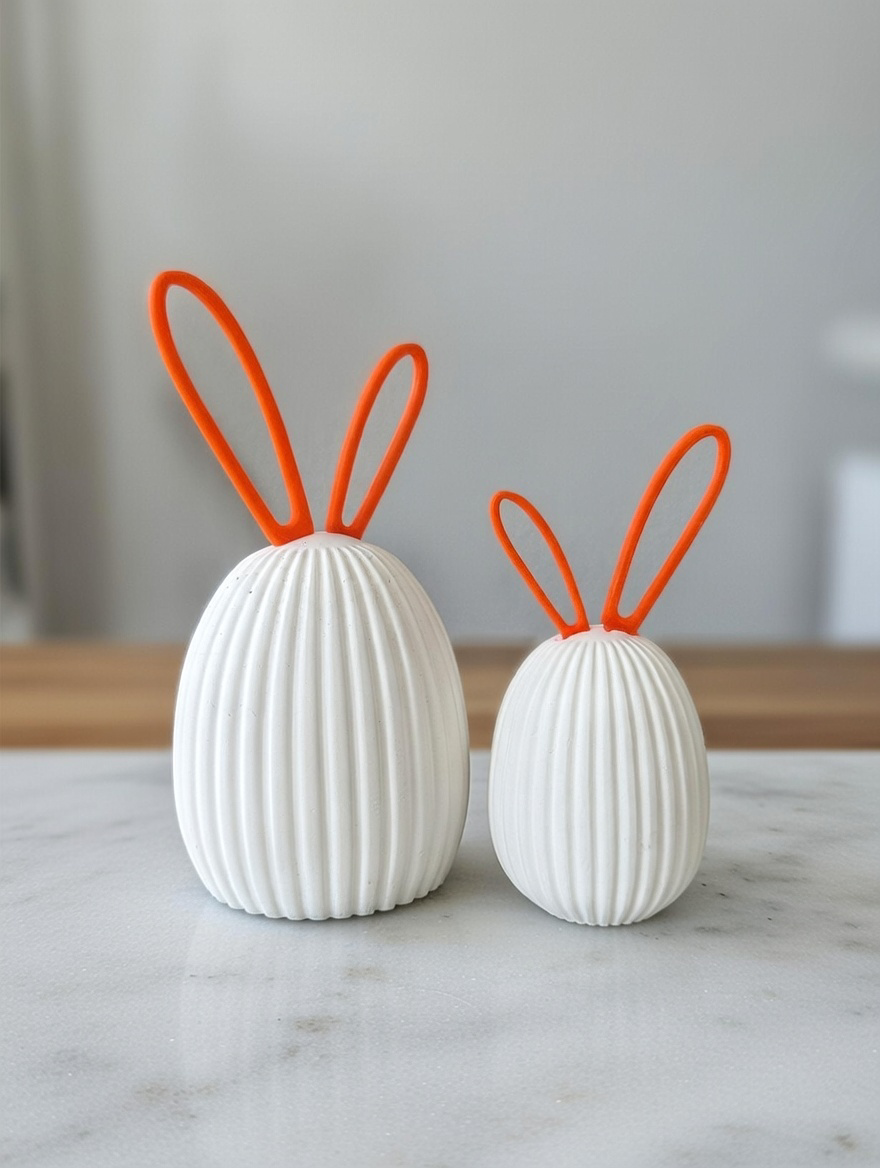 Diese modernen Ostereier sind ein stilvolles Highlight für alle, die Osterdekoration modern, hochwertig und mit einem Augenzwinkern lieben. Die 3D-gedruckten Ostereier überzeugen durch ihre feine Rillenstruktur und die charakteristischen Steckohren, die den Eiern eine reduzierte, zeitgemäße Hasen-Optik verleihen. Modernes Design trifft hier auf spielerische Leichtigkeit – fernab von klassischer Osterdeko.