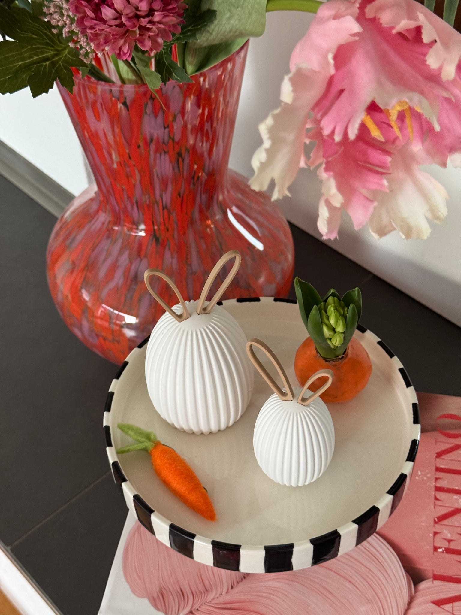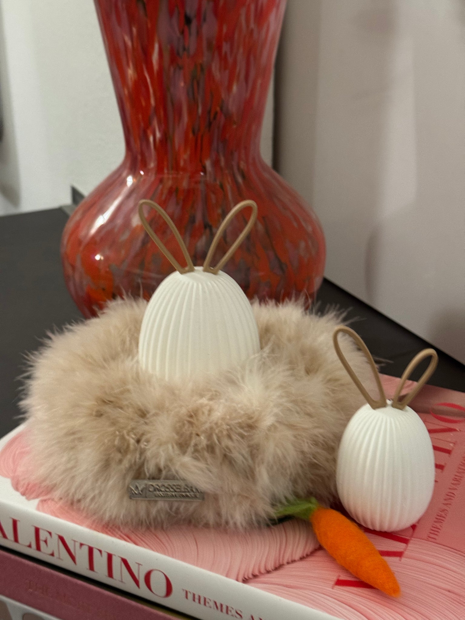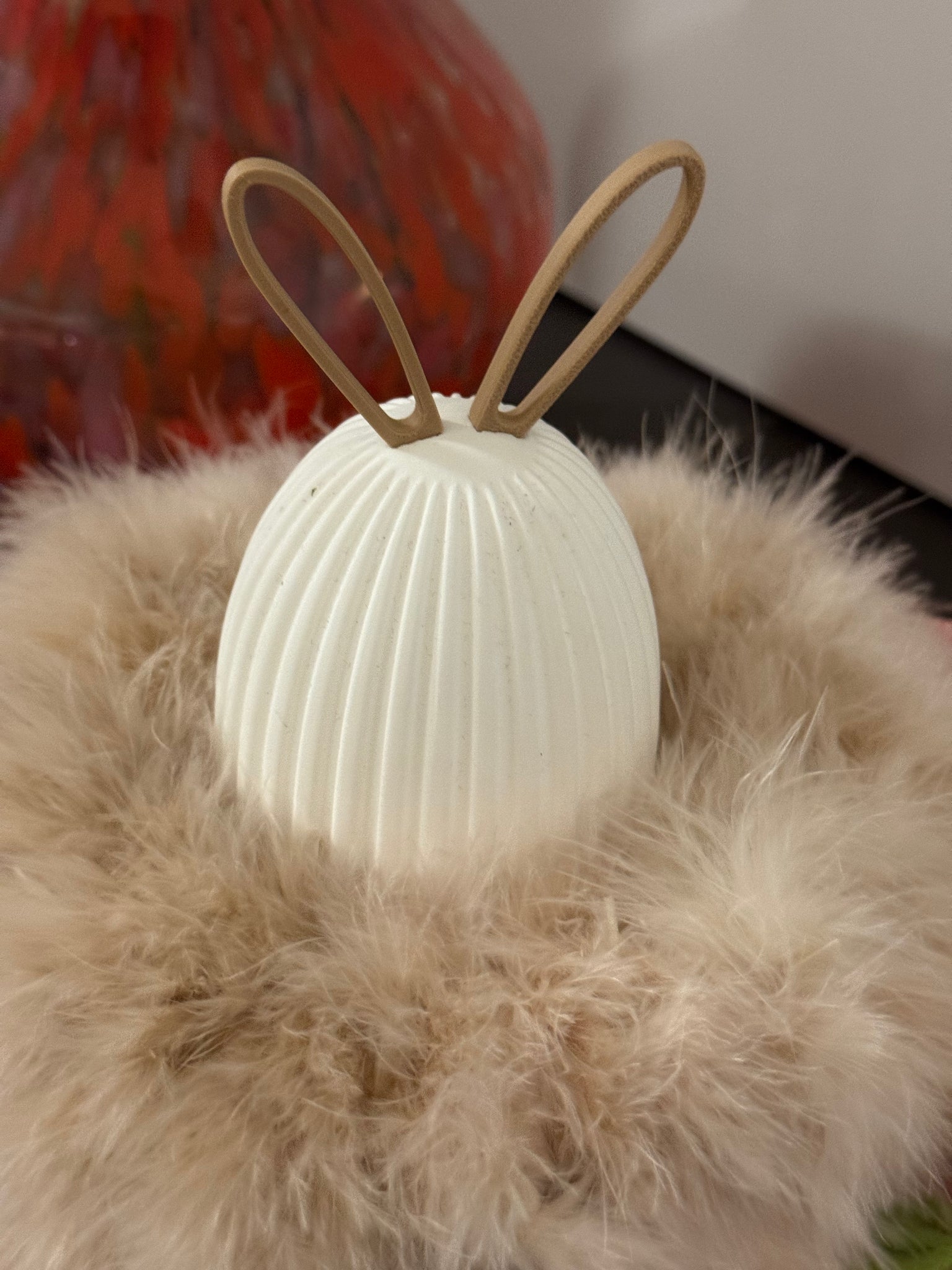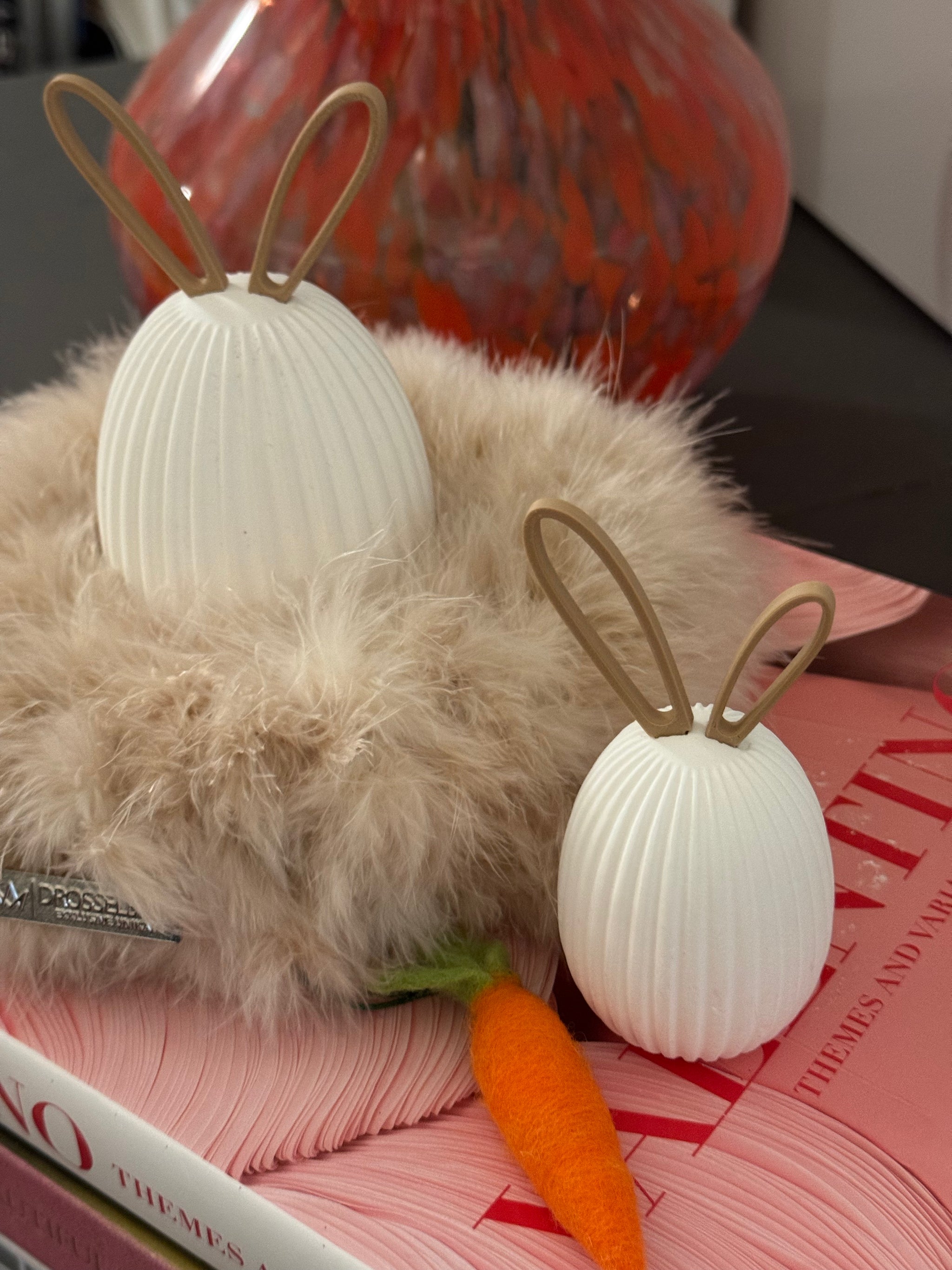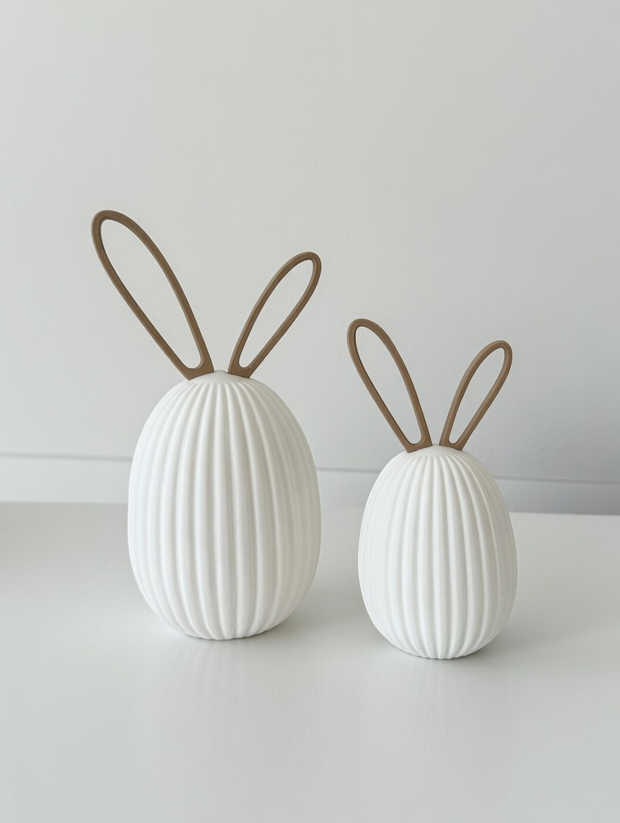 Diese modernen Ostereier sind ein stilvolles Highlight für alle, die Osterdekoration modern, hochwertig und mit einem Augenzwinkern lieben. Die 3D-gedruckten Ostereier überzeugen durch ihre feine Rillenstruktur und die charakteristischen Steckohren, die den Eiern eine reduzierte, zeitgemäße Hasen-Optik verleihen. Modernes Design trifft hier auf spielerische Leichtigkeit – fernab von klassischer Osterdeko.