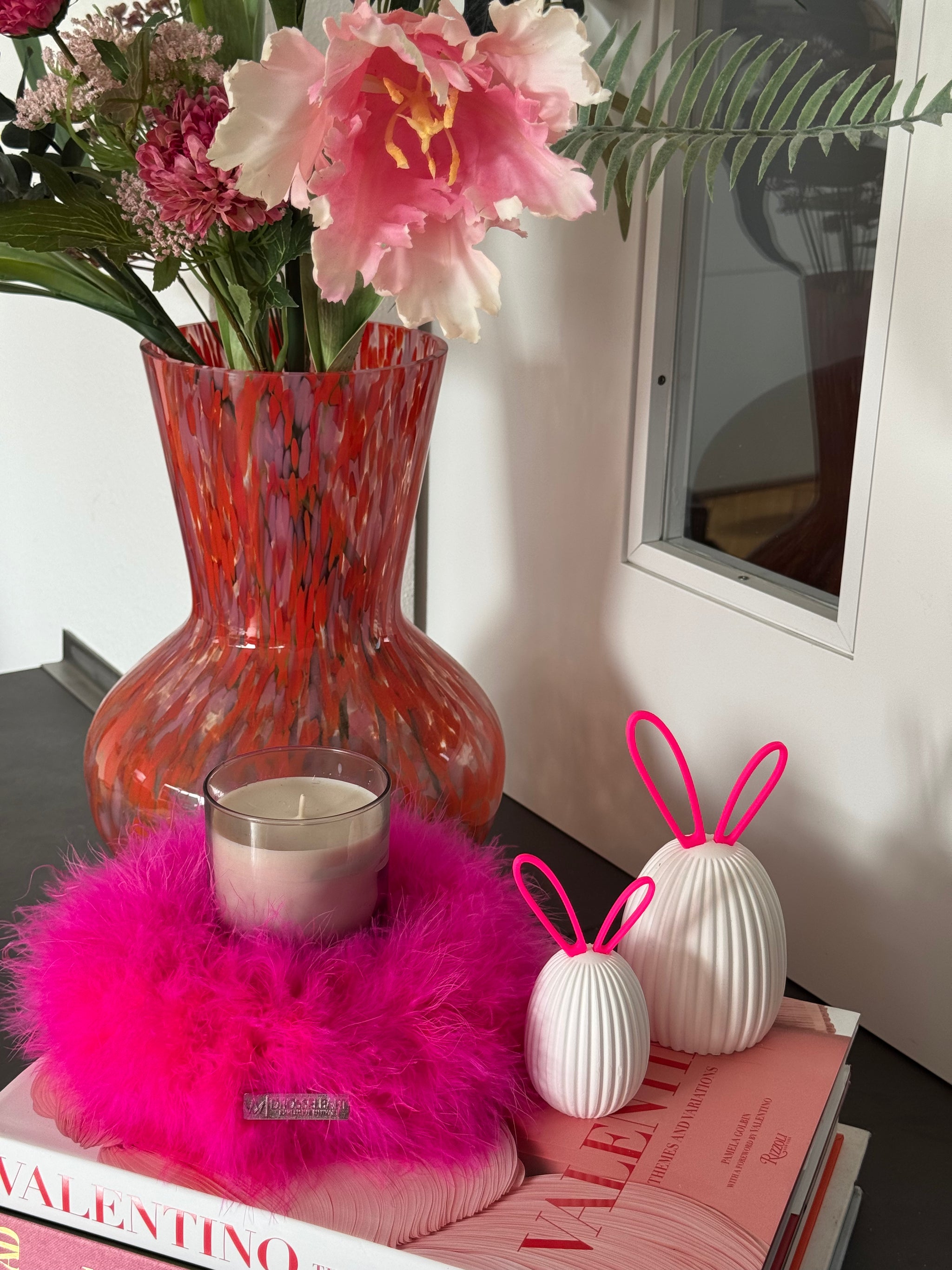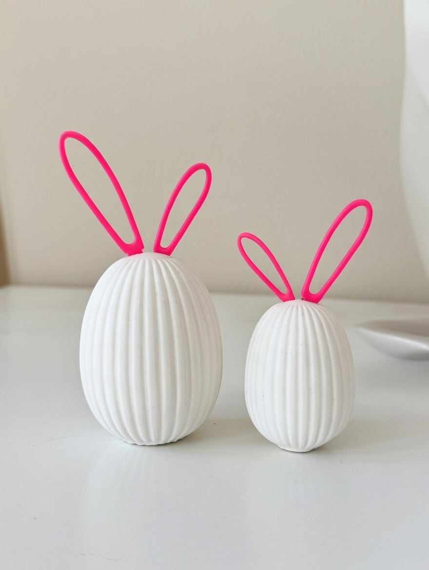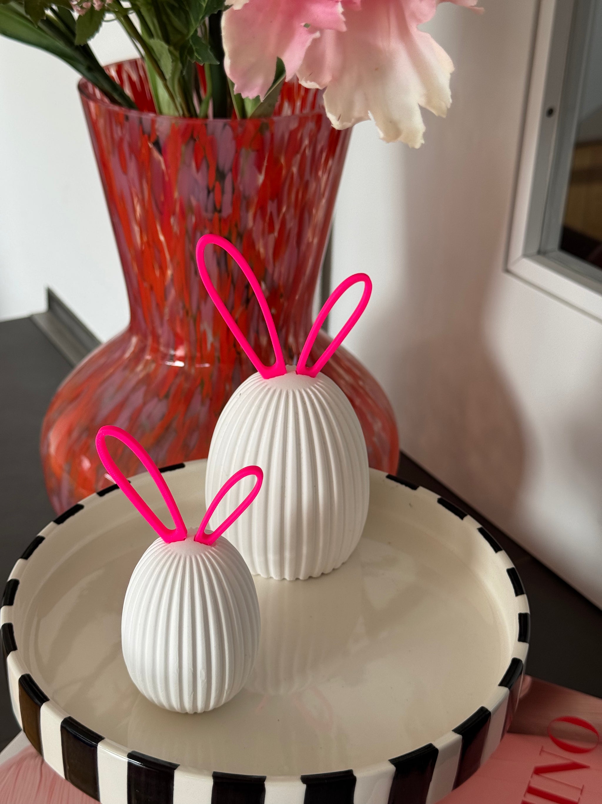 So verwandeln sich die formschönen Eier im Handumdrehen von schlichter Osterei-Deko zu verspielten Hasenfiguren. Ohne Ohren wirken sie minimalistisch und modern, mit Ohren fröhlich und einladend – ideal für wechselnde Arrangements.