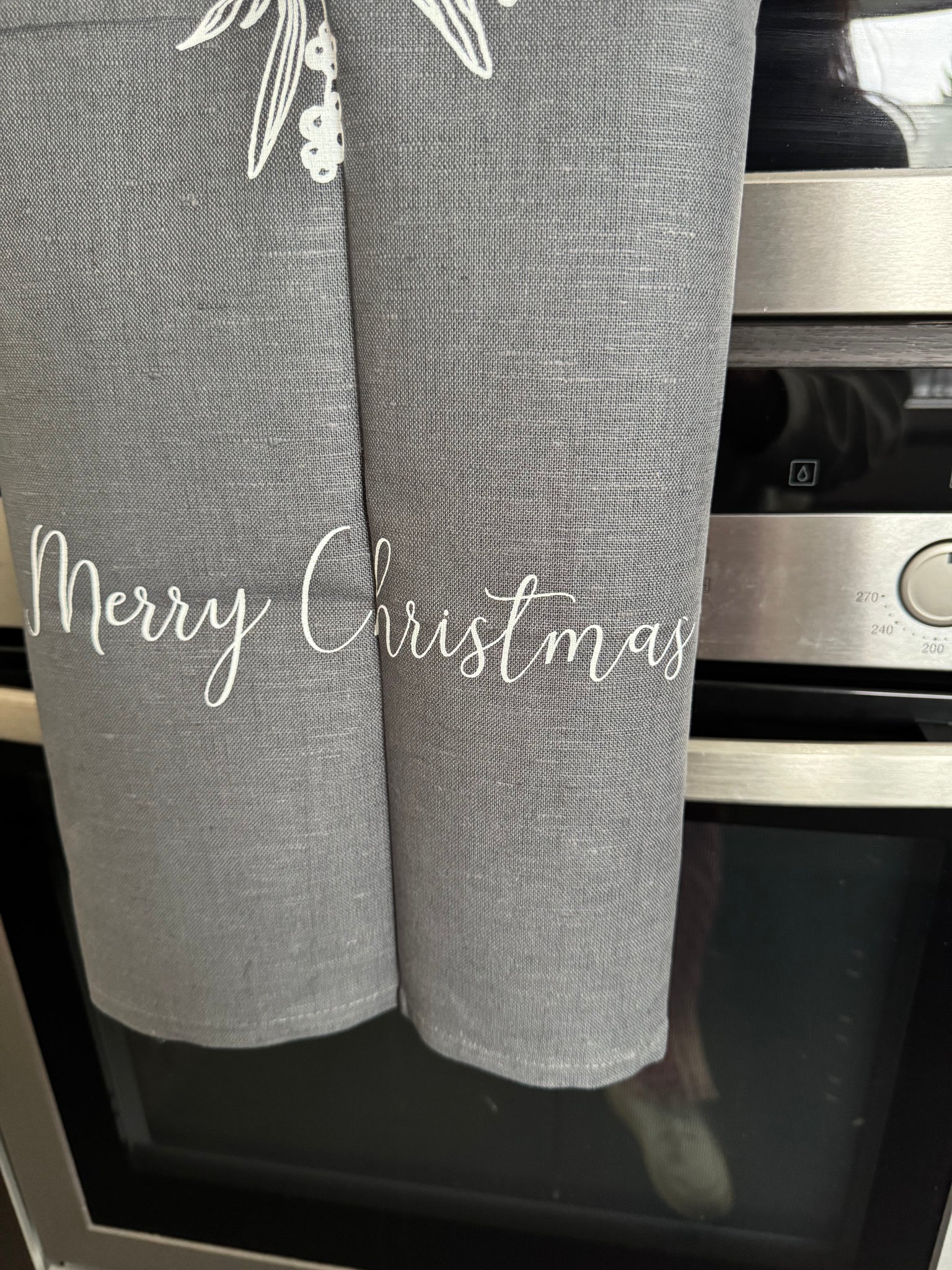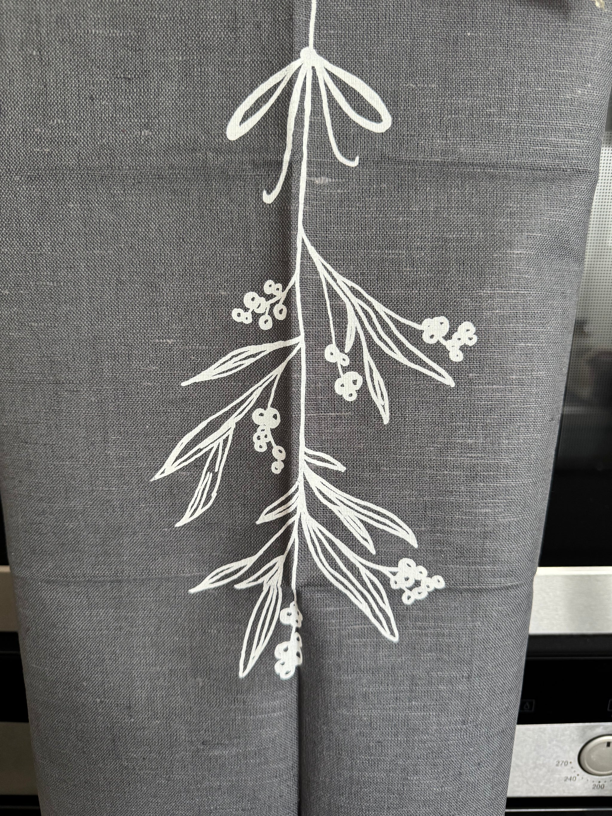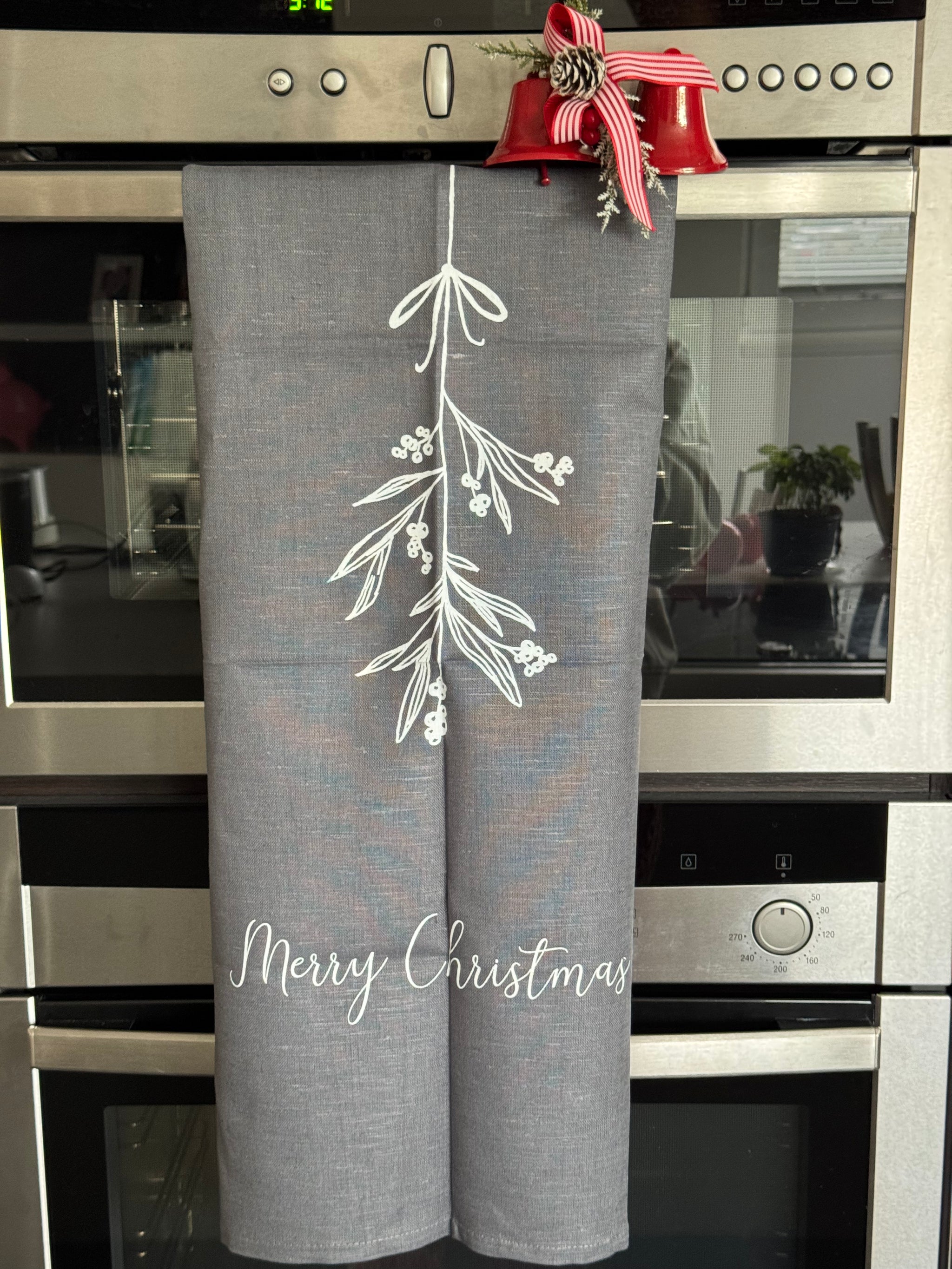 Geschirrtuch „ Merry CHRISTMAS " Mistelzweig grau Siebdruckkunst von M. Tenbergen