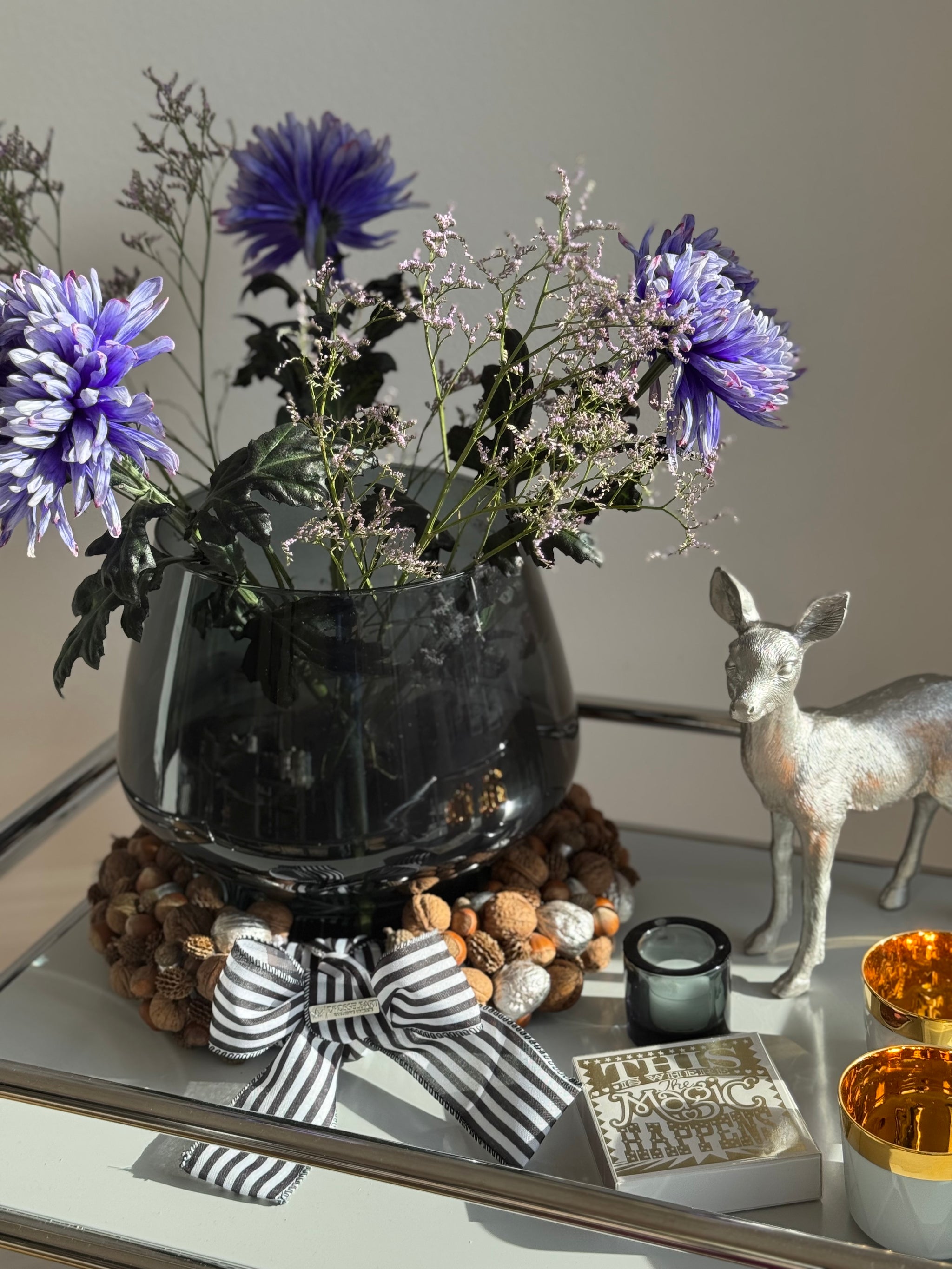 Dekoriert mit einer 24 cm hohe Baobab-Kerze, einer Vase mit Blumenstrauß oder mit einem Windlicht sorgt er für einen wunderschönen Blickfang egal ob auf dem Sideboard oder auf dem Tisch.