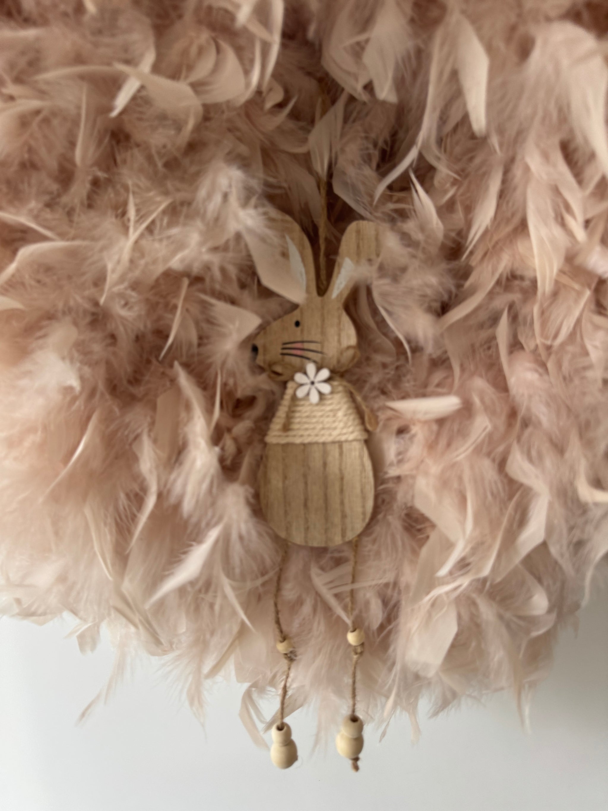 - Geliefert wird der Federkranz in der abgebildeten Farbe inklusive kleinem Holz Osterhase wie abgebildet