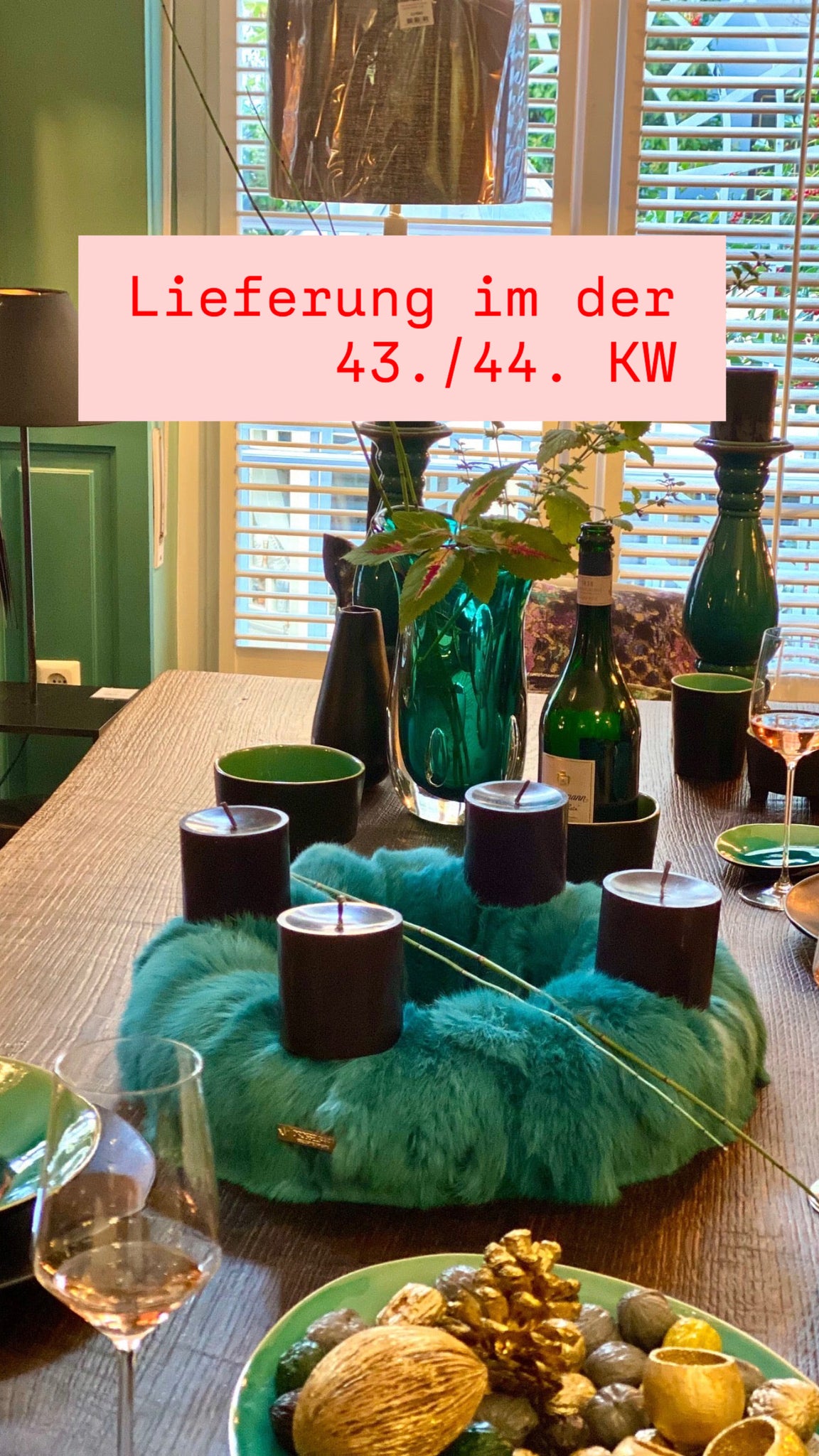 geliefert wird, ein Echtfellkranz wie abgebildet in türkis ca. 40 cm Durchmesser mit 4 Engels Kerzen Farbe: sanftes, samtiges schwarz/Anthrazit mit warmer Tiefe, bewusst gewählt, um eine elegante, nicht dominante schwarznuance zu gewährleisten