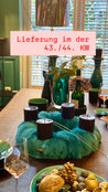 Ob wie hier als Tischdekoration mit wertigem Windlicht oder mit Blumen - unsere Kränze können als Tür; Frühlings; Herbst oder Adventskranz zu jeder Jahreszeit platziert werden.