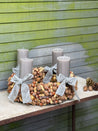 - Die vorgefertigten Schleifen müssen nur noch von Dir um die Kerzen gebunden werden – eine einfache und schnelle Dekoration.