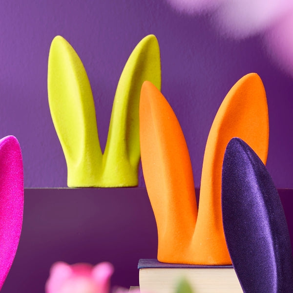 Diese beflockten Hasenohren sind ein modernes Deko-Highlight mit samtig-weicher Oberfläche.