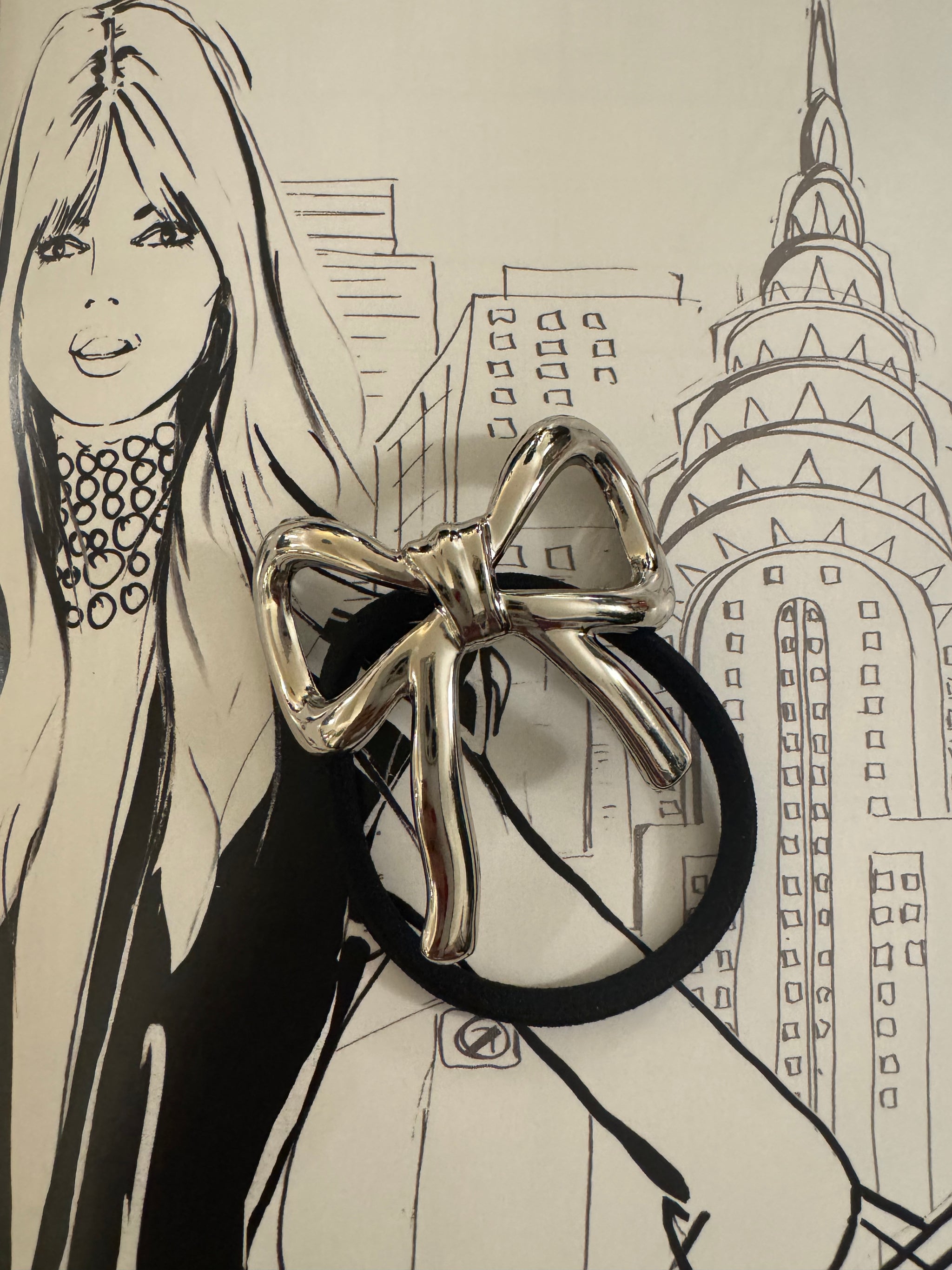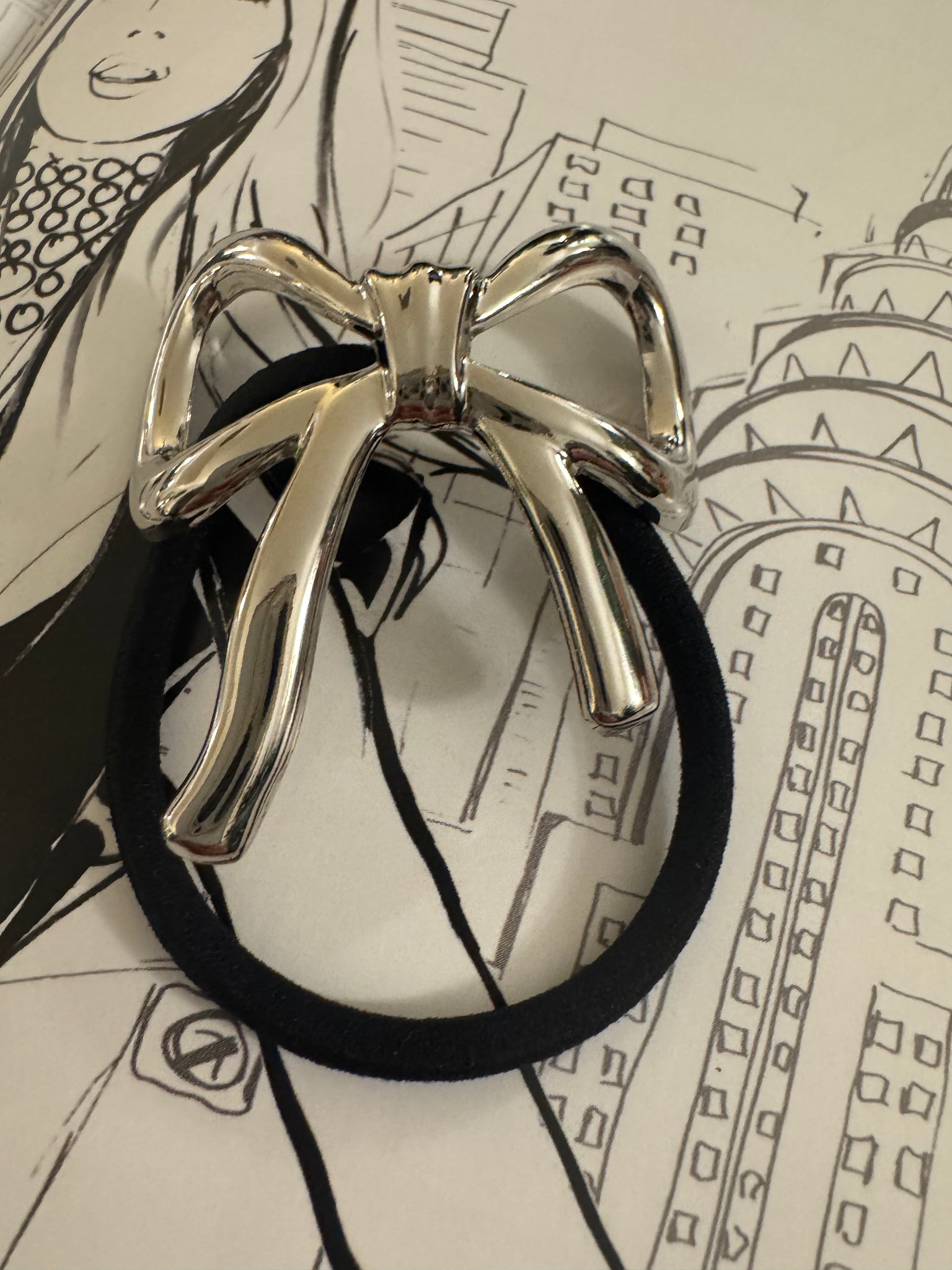 🎀 Schleifentrend Haargummi Schleife Zopfband silber