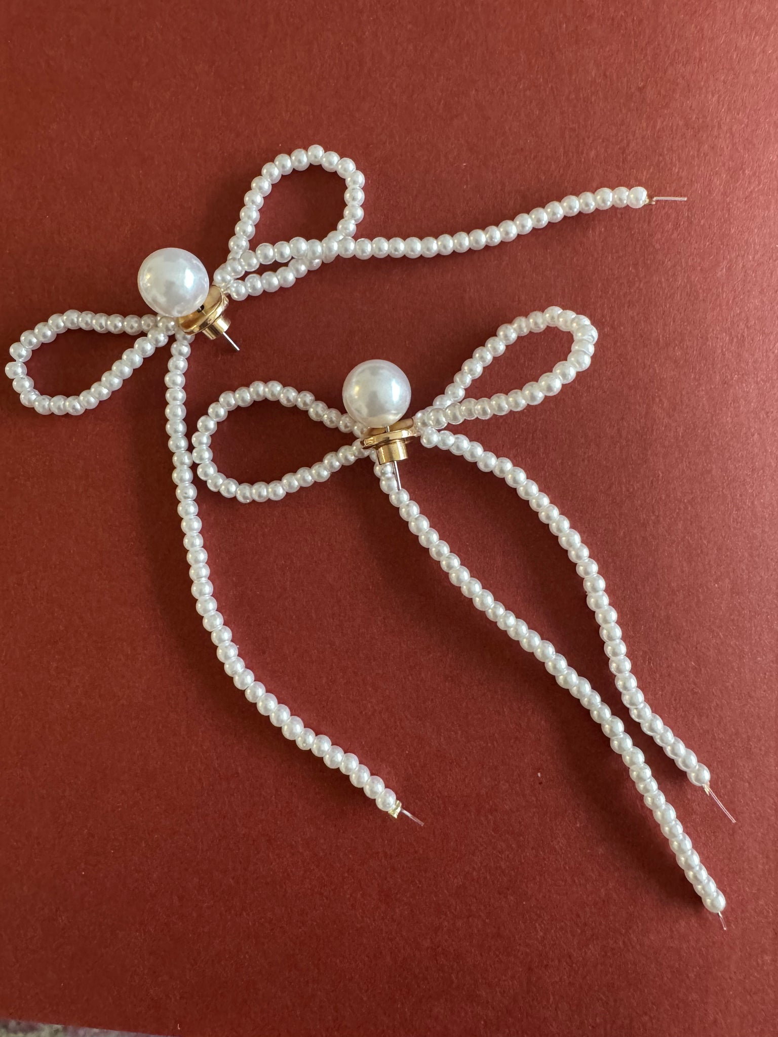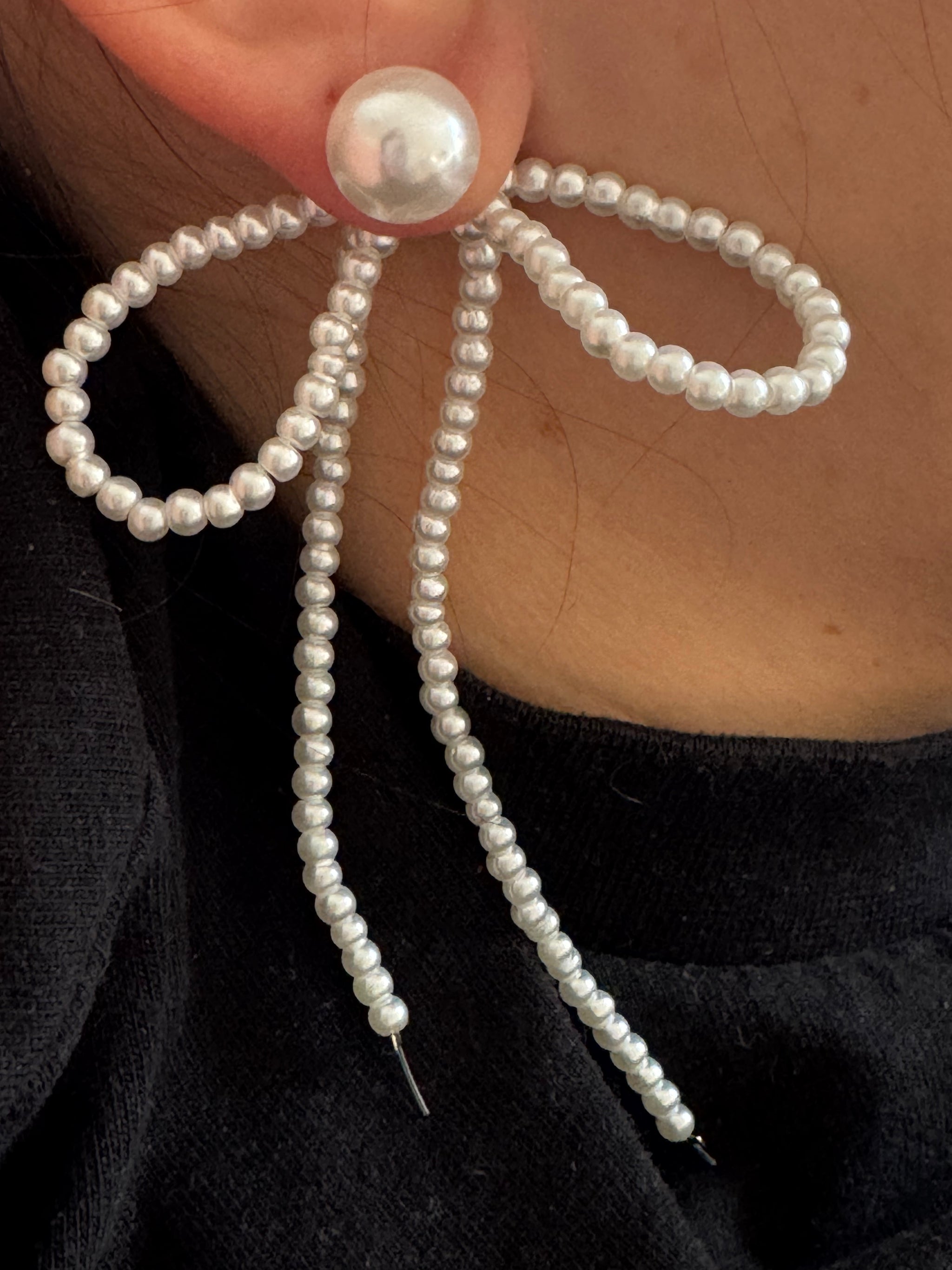 Schleifentrend - Lange Perlen Stecker Ohrringe mit Schleifen