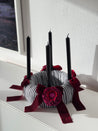 Die klare Formensprache, das edle Streifenmuster und die dunklen Kerzen schaffen eine puristische Ästhetik, die durch ihre schlichte Schönheit besticht – ein echtes Statement-Piece à la Chanel.
