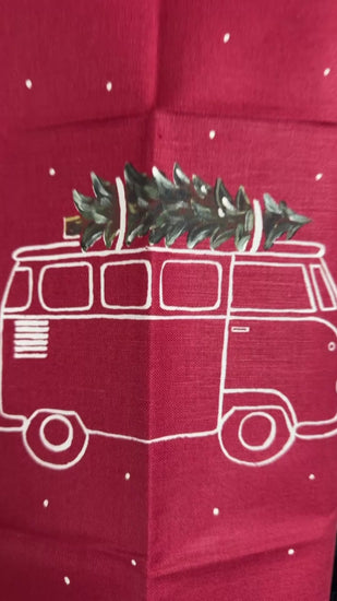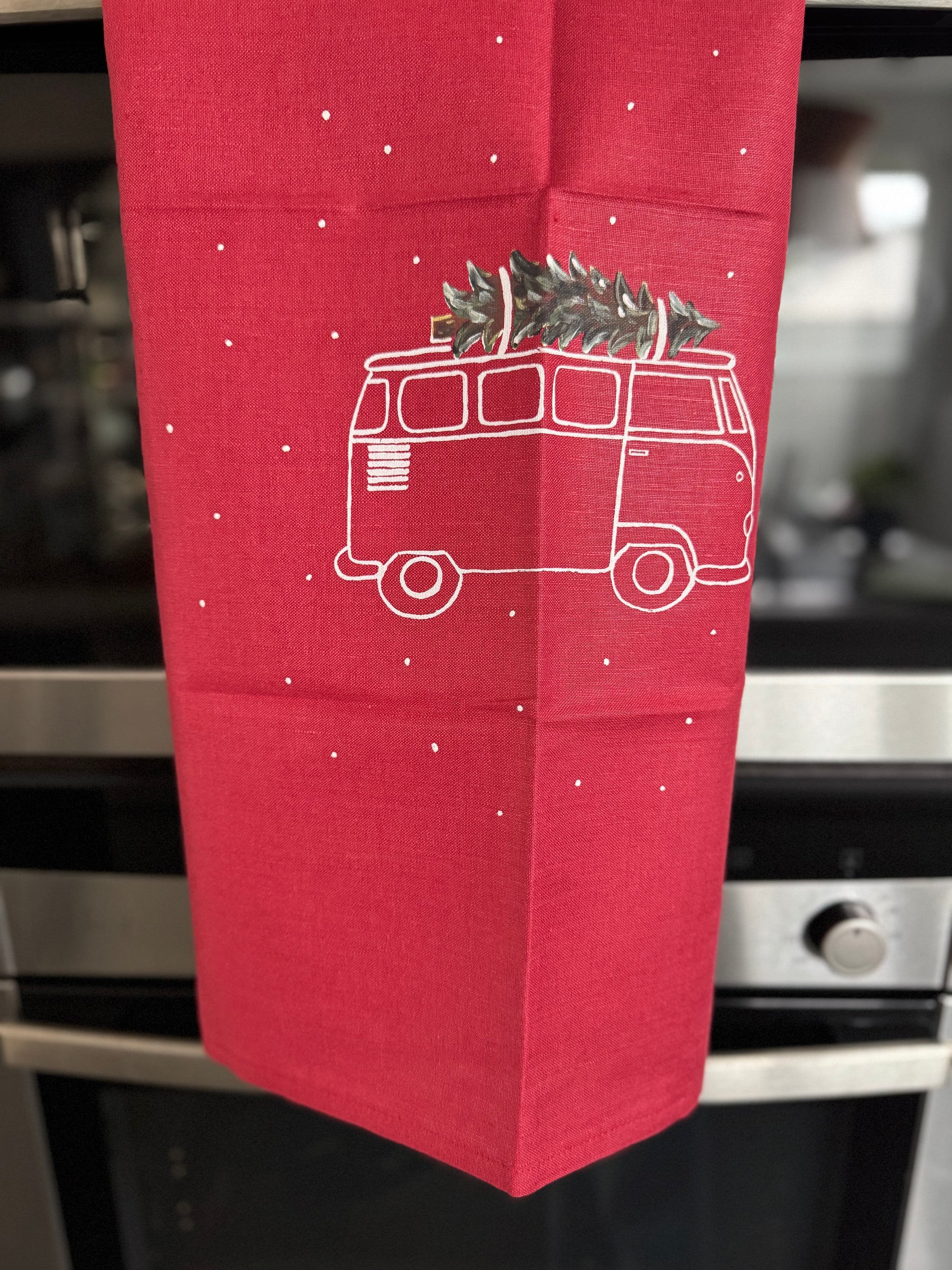 „Bulli Weihnachten 🌲“Geschirrtuch rot/weiss - Siebdruckkunst von M. Tenbergen